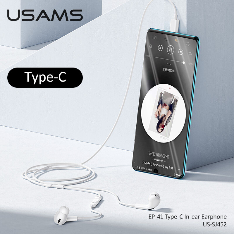 USAMS Type-C In-ear Earphones With Build-in Mic Lossless Music Headsets For Huawei P20 P20 Pro/P30 P30 Pro/nova 2/OPPO Find X/Xiaomi