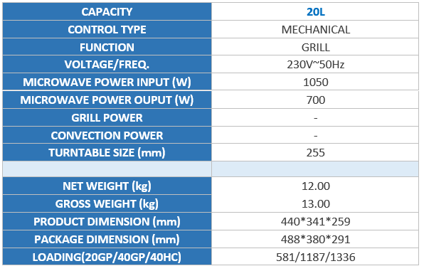 MIDEA MM720CJ9 20L BLACK MICROWAVE OVEN