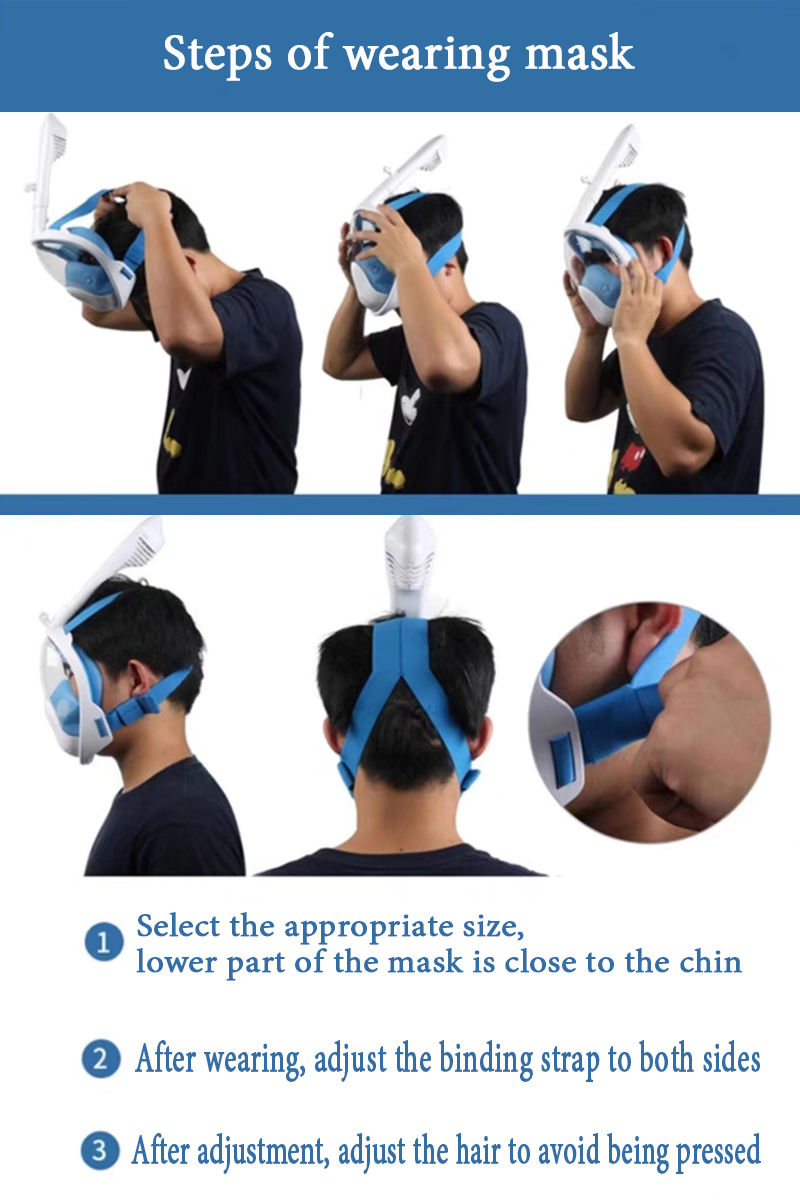 1. Put on the diving mask and place your head in the water to ensure that no water enters the mask.