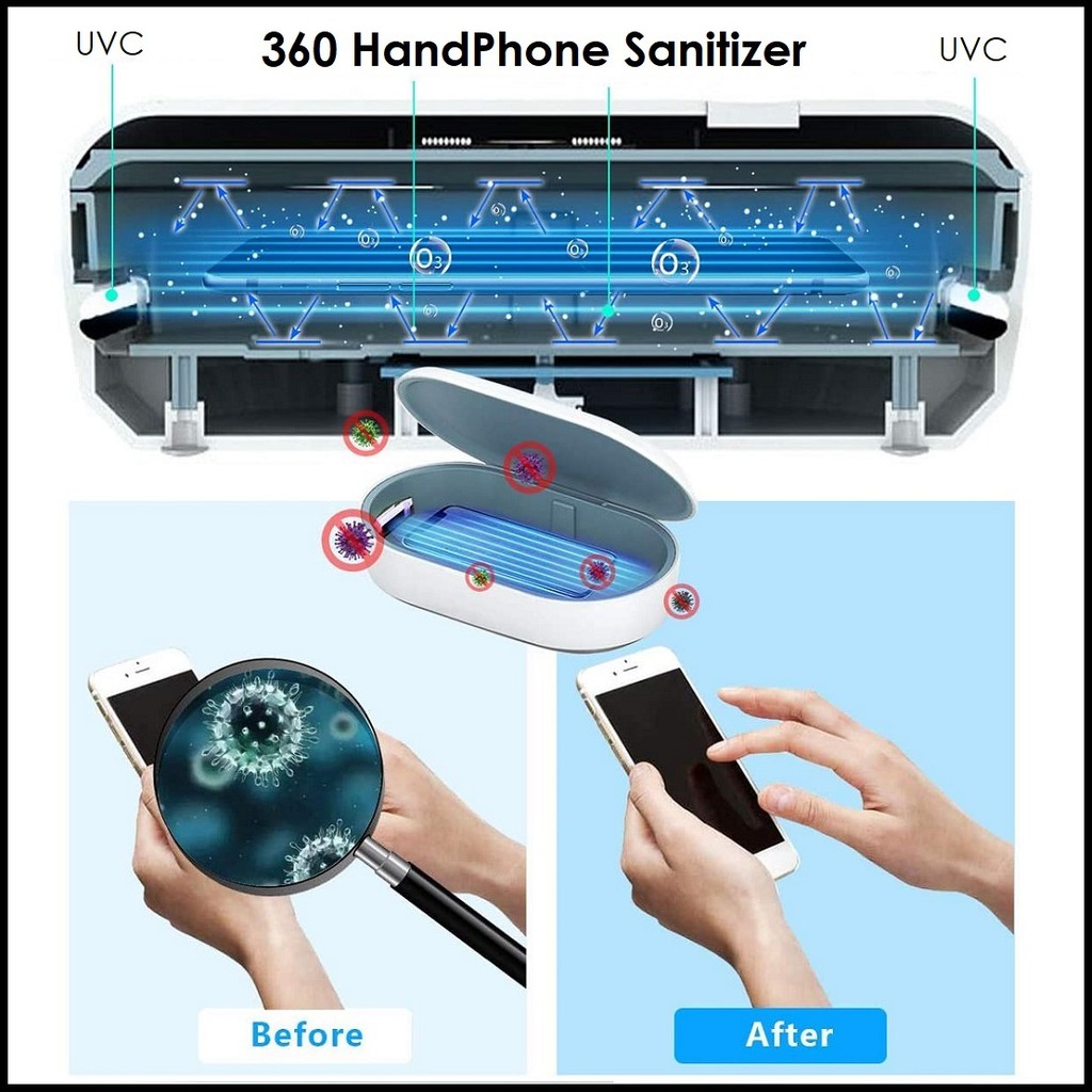 -【WIRELESS CHARGING】– Besides a simple UV sanitiser box, our cell phone cleaner with UV light is also a wireless charger for any QI-enabled device. Simply place your smartphone (work for ALL WIRELESS PHONES - APPLE/HUAWEI/SAMSUNG/XIAOMI ETA) on the top of the box and enjoy your cup of coffee.