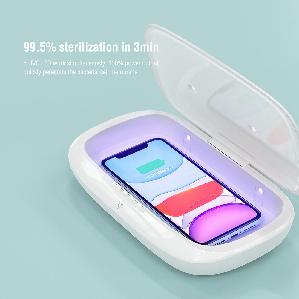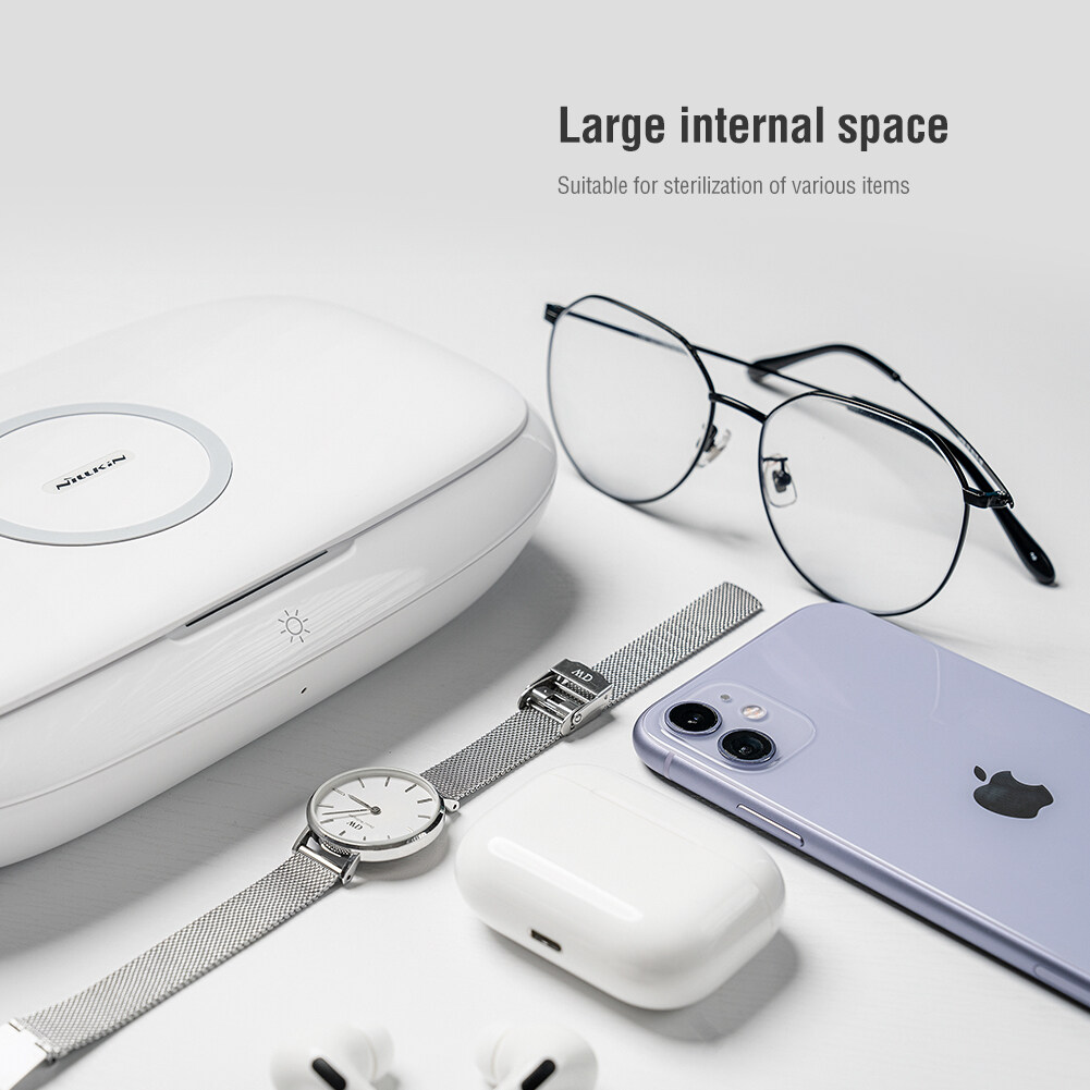 Nillkin FlashPure Pro UV sanitizing box with wireless charger Can be sterilized anytime and anywhere Sterilization rate reaches 99.5% for Phone / Watch / Headset / Jewelry
