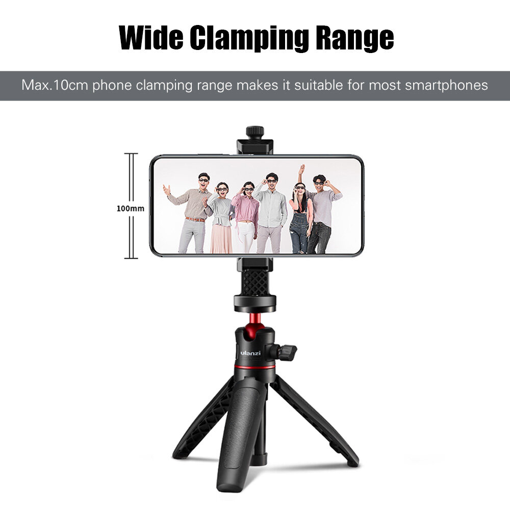 The cold shoe above the clamp is suitable for microphone and LED light expansion.