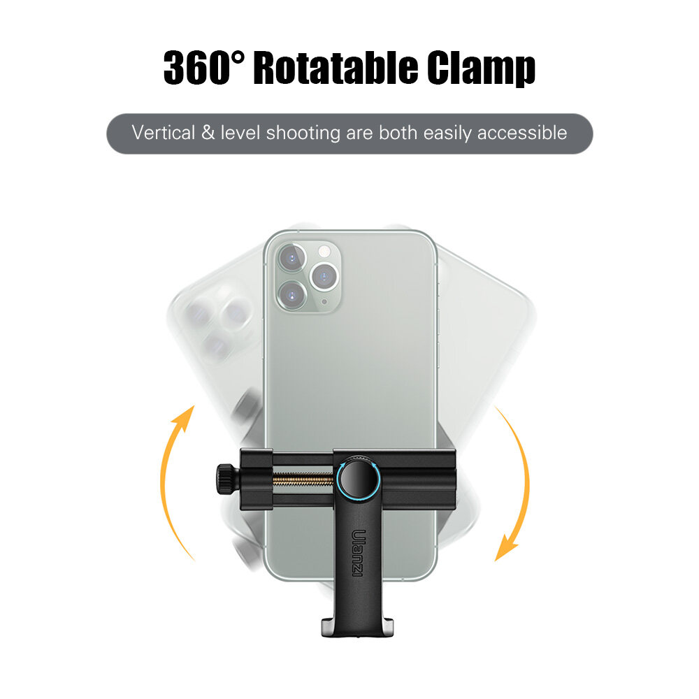 Ulanzi ST-17 Phone Clamp Holder 360° Rotatable Horizontal Vertical Shooting with Cold Shoe Universal 1/4 Mounting