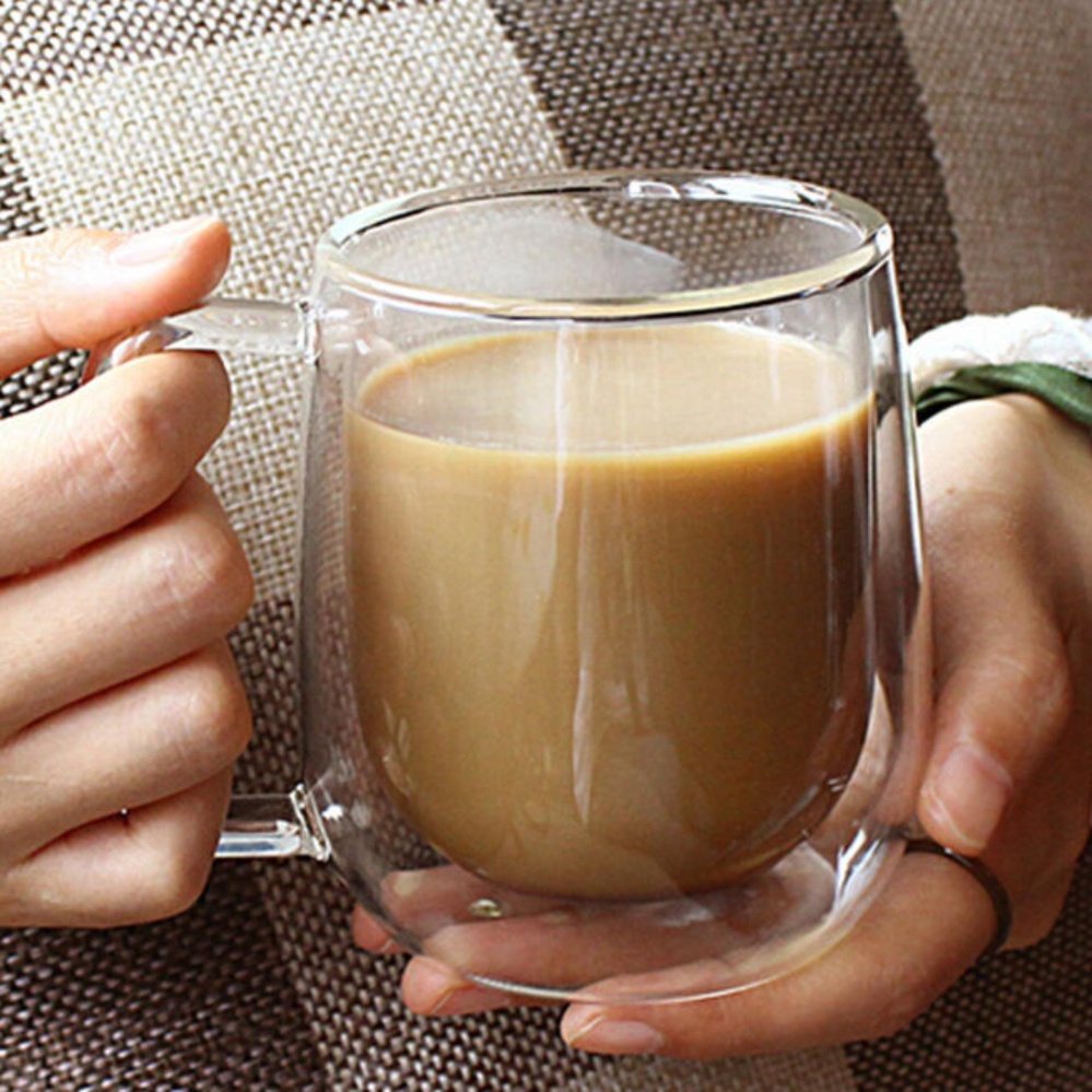 [READY STOCK] 250ml Double Walled Glass Coffee Cup Tea Mug Heat-Proof Handmade Borosilicate Glass Cup Use for Cold Hot Beverages Coffee Glasses Tea Cup Cute Gifts