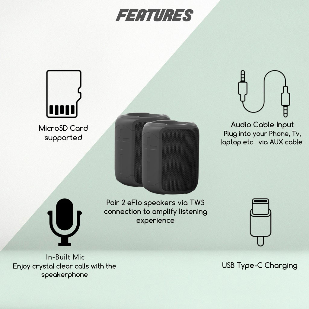 Blackdot eFlo Wireless Speakers With 360 Premium Sound, In-built Mic & IPX7 Waterproof