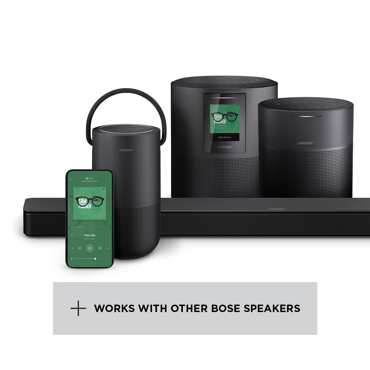 The Bose Smart Soundbar 300 delivers spacious sound, clear dialogue, and rich bass for your movies, music, and games. The acoustic architecture is specially designed to keep this soundbar sleek and elegant. With built-in voice assistants and exclusive Bose Voice4Video™ technology, what typically takes several steps can now be done with one simple voice command. It’s fast, simple, and easy enough for everyone to enjoy.