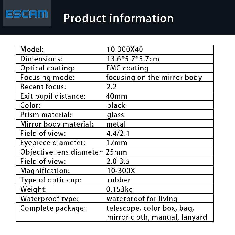 1 x 10-300X40mm telescope monocular1 x Tripod1 x Phone clip