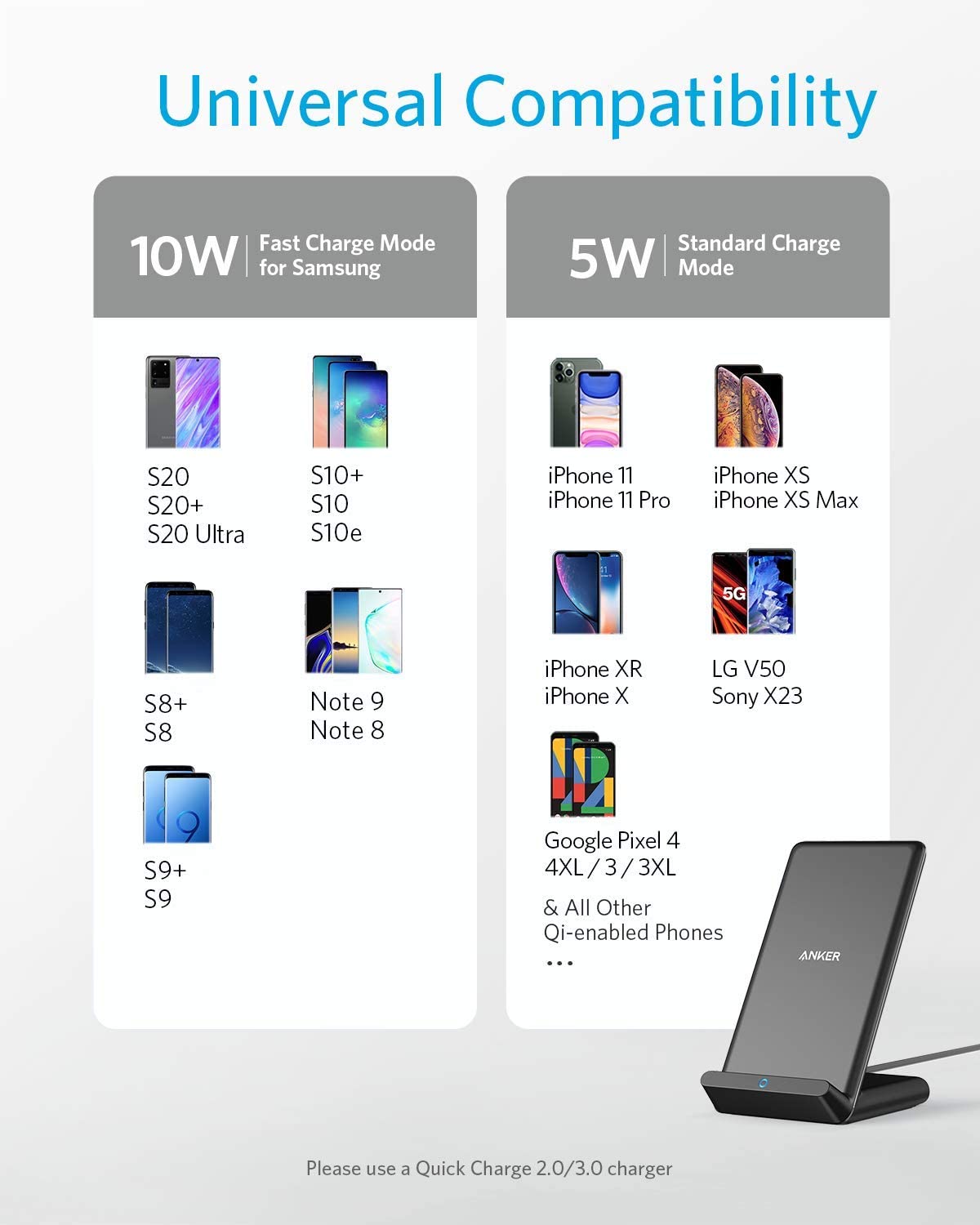Anker Powerwave Wireless Charger Stand 10W Qi-Certified Fast Charging Iphone 11 , Samsung S10 *3 Days Delivery* ? Authentic