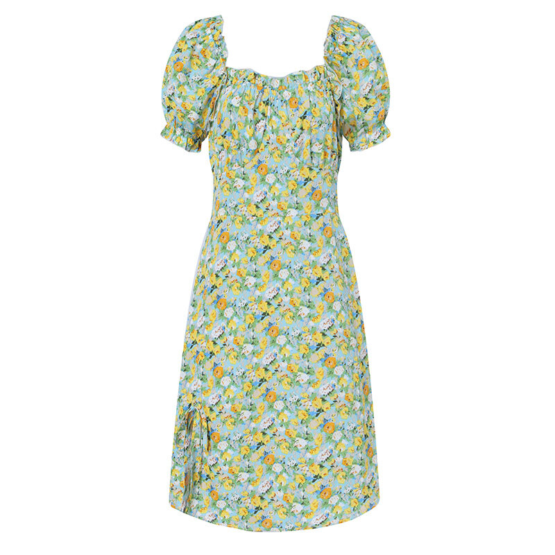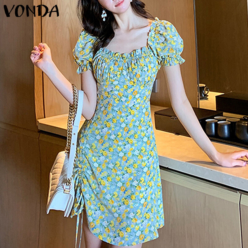 MASHYCHIC VONDA Womens Summer Short Sleeve Casual Pleated Dress Printed Floral Sundress (Korean Floral)