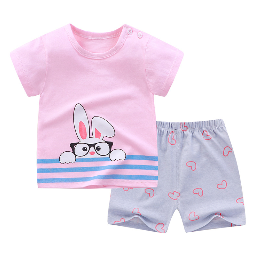 QINN Toddler Baby Kids Boys Girls 100% Cotton Clothing Sets Cute Print T-shirts Tops + Shorts Pants Trousers Home Wear Children Boy Girl Pajamas Clothes Set For 0-7 Years