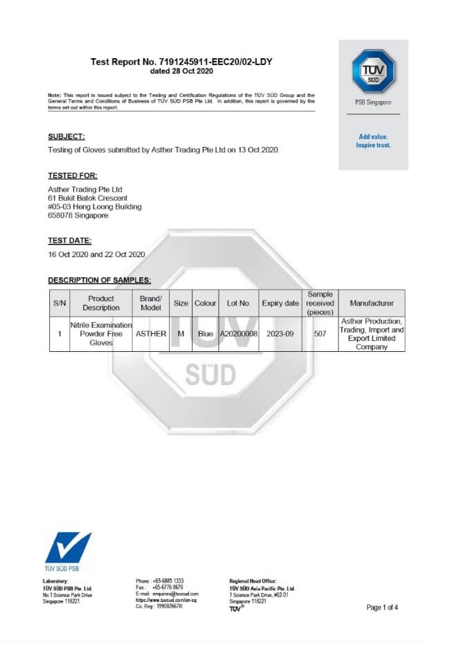 Asther Trading Private Limited. is a new manufacturer of latex and nitrile examination gloves for both general applications and medical markets. The core value for our brand is: ”Quality and Safety Assured” We are committed in providing our customers with good quality products, high standard service and trustworthy business relationship.
