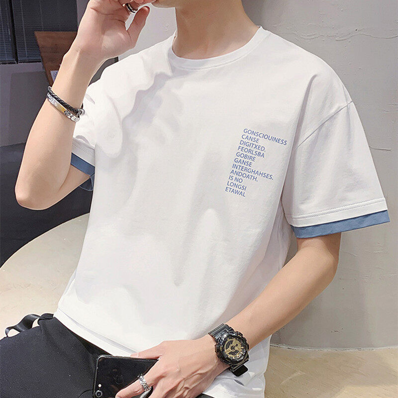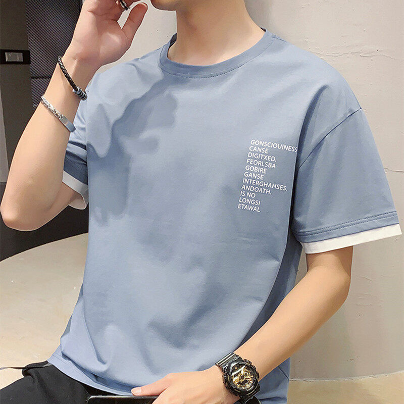 t shirt Men New Korea Style Plus Size Letter Print t-shirts Clothes Fashion Tops Causal Short Sleeve Oversize Korean Style Tees