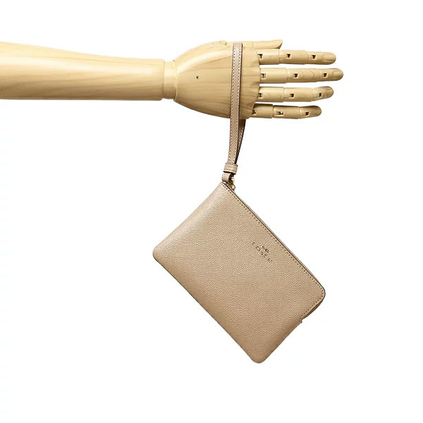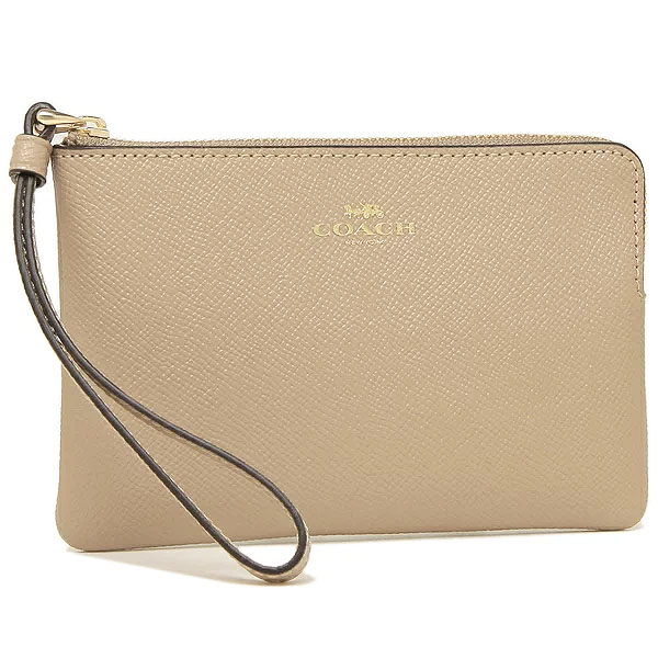Coach Wristlet In Gift Box Small Wristlet Crossgrain Leather Corner Zip Taupe Beige # 58032