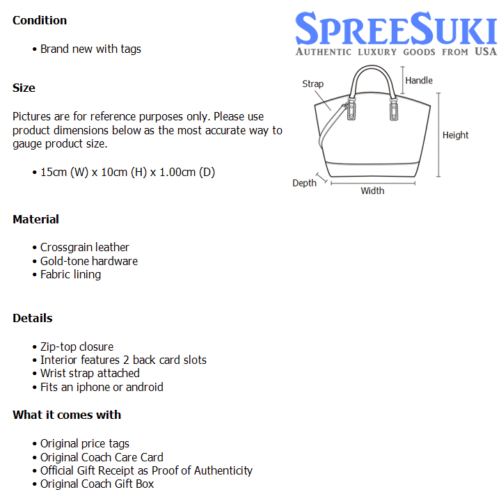 All our products are 100% authentic and purchased from Coach stores in USA. We are a reputable registered business in Singapore and it is illegal to sell counterfeit goods in Singapore. This product also comes with a gift receipt which is printed by the Coach store that we purchased the item from. It states the item that we purchased and the Coach store that it was purchased from, proving the authenticity of the item. Buy with confidence.
