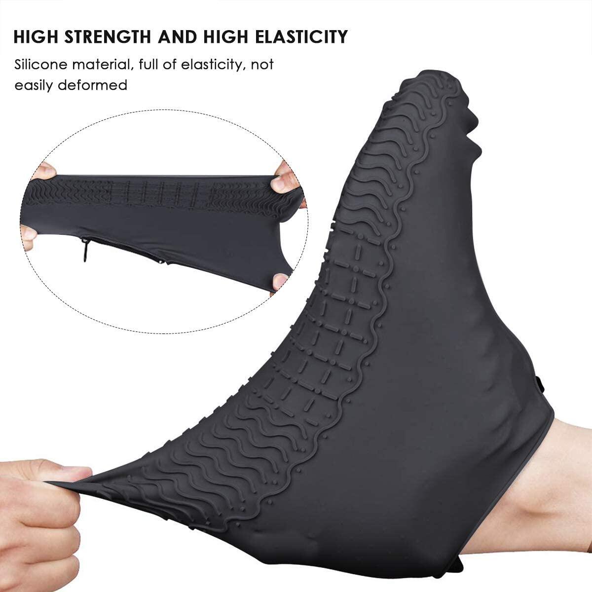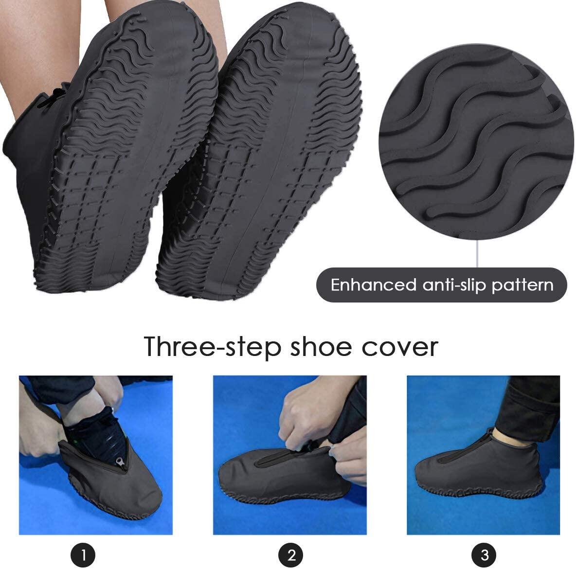 Reusable Shoe Covers, Silicone Waterproof Overshoes with Zipper, Outdoor Shoe Protectors Not-Slip Rain Galoshes for Men Women