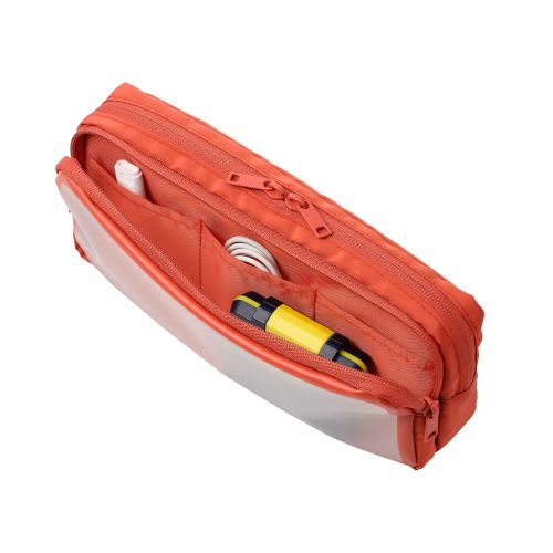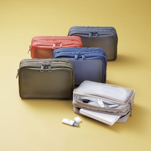that allows you to see through the contents of the pouch. A two-chamber pouch