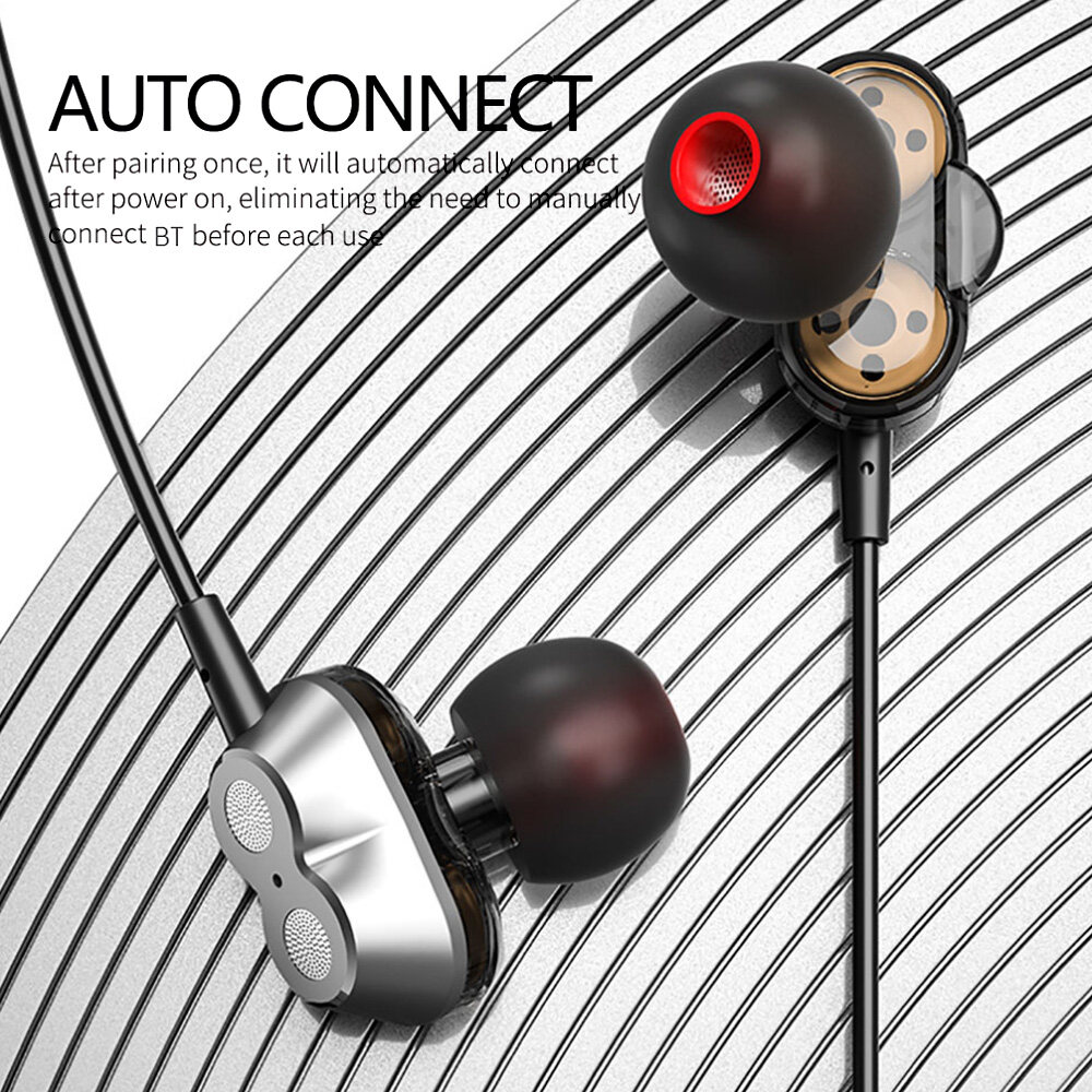 Magnetic Design - The built-in magnet gives this BT headset neckband a convenient storage way to carry around when your earbuds not in use.