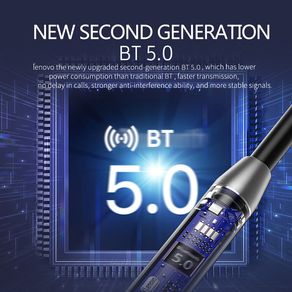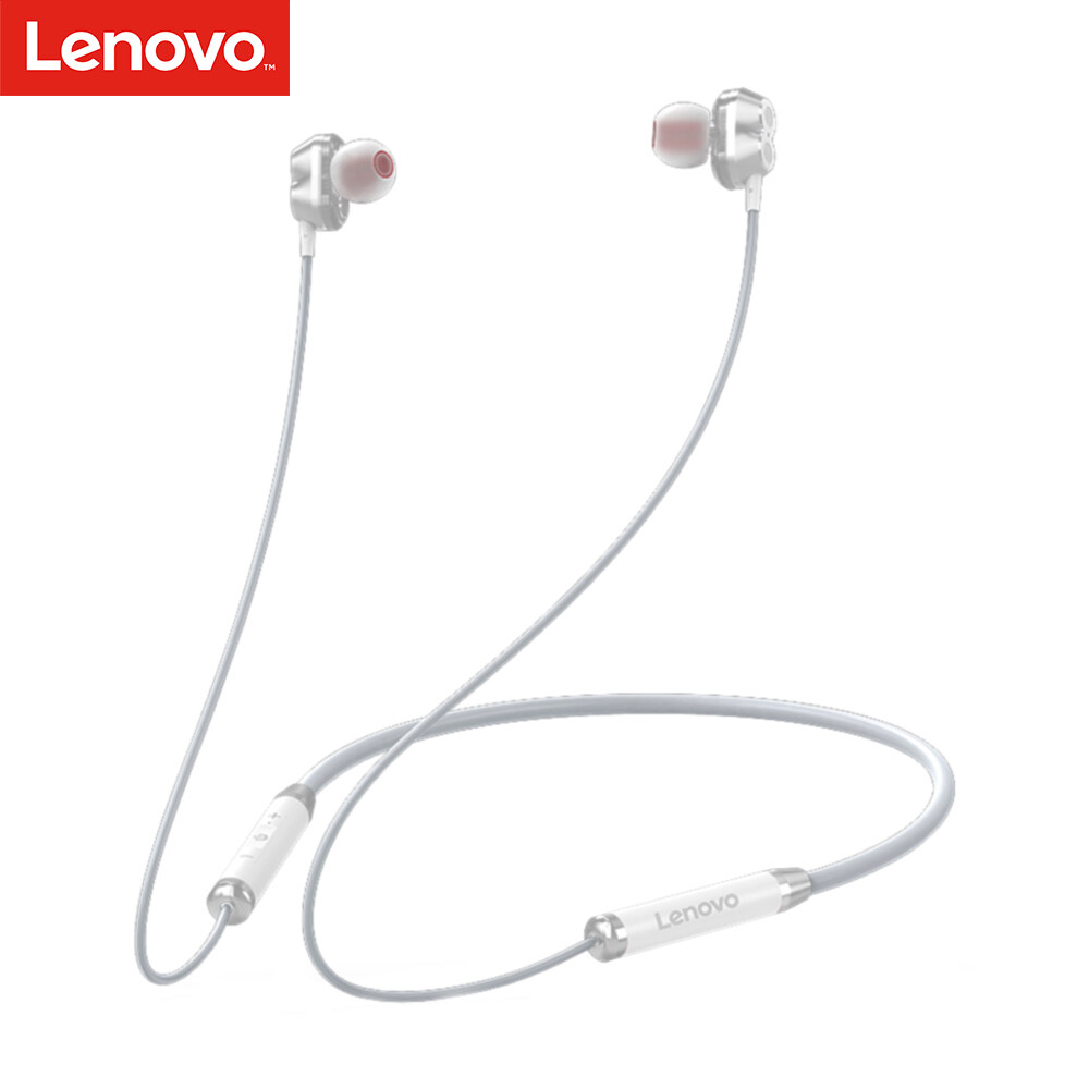Lenovo HE08 BT 5.0 Neckband Wireless Headphone w/Dual Dynamic + 4 Speakers/Noise Reduction HiFi Stereo Earphone Waterproof Sport Magnetic Headset With Mic Compatible with iOS/Android