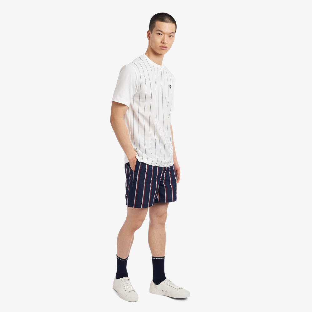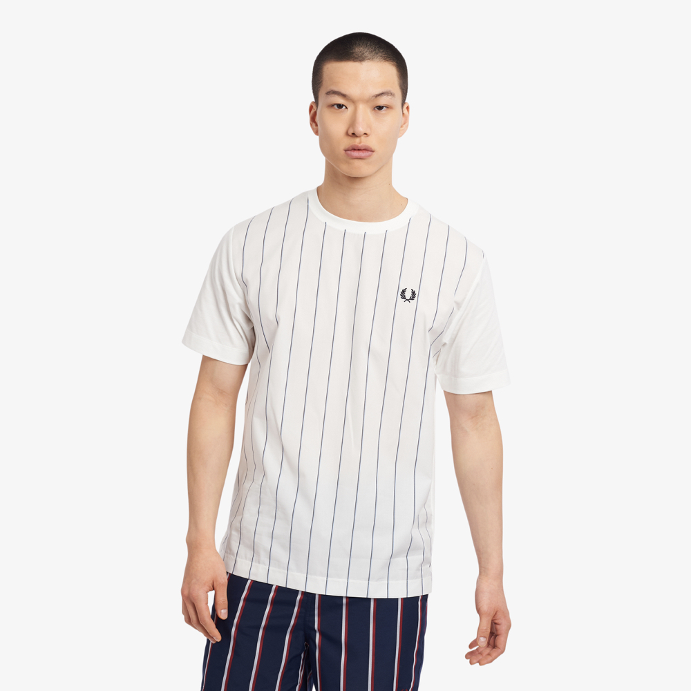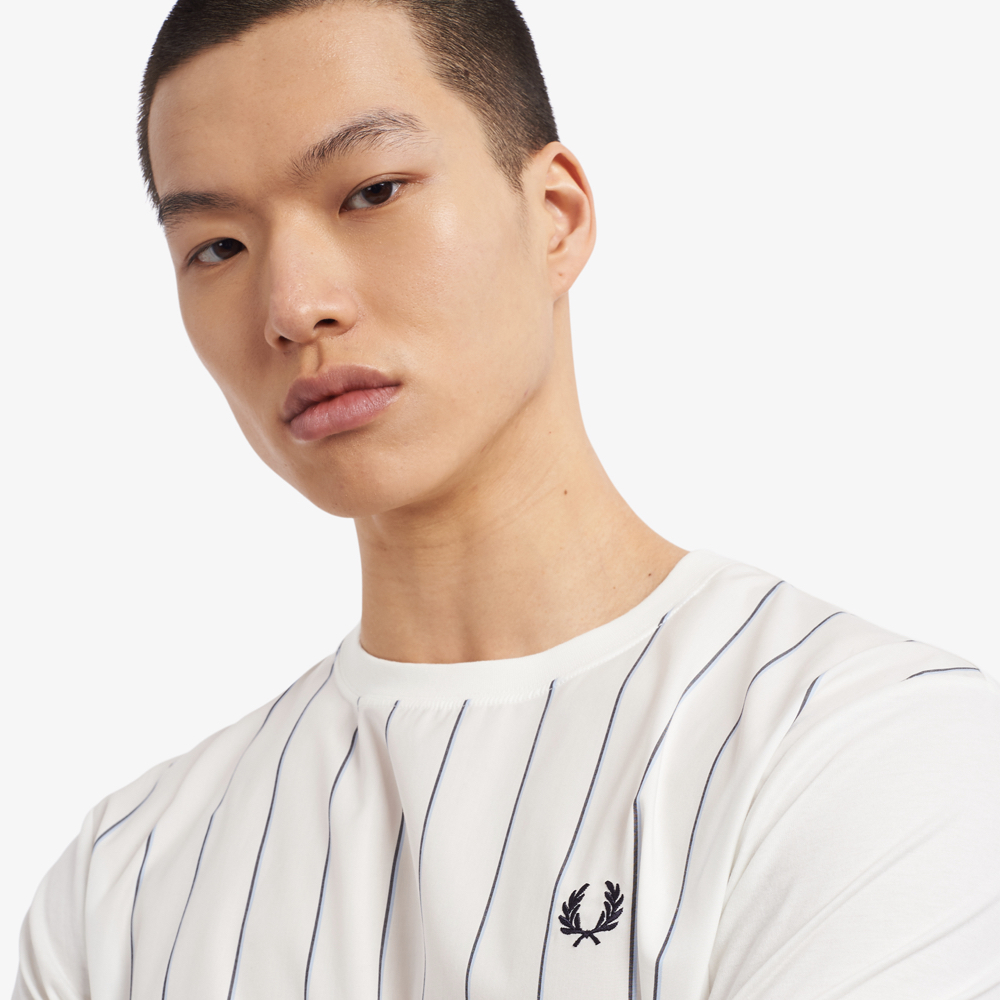 A modernist take on high-summer dressing, the humble jersey T-shirt is given a crisp poplin front panel and smart pinstripe design. Clean lines and easy-breezy fabrics.