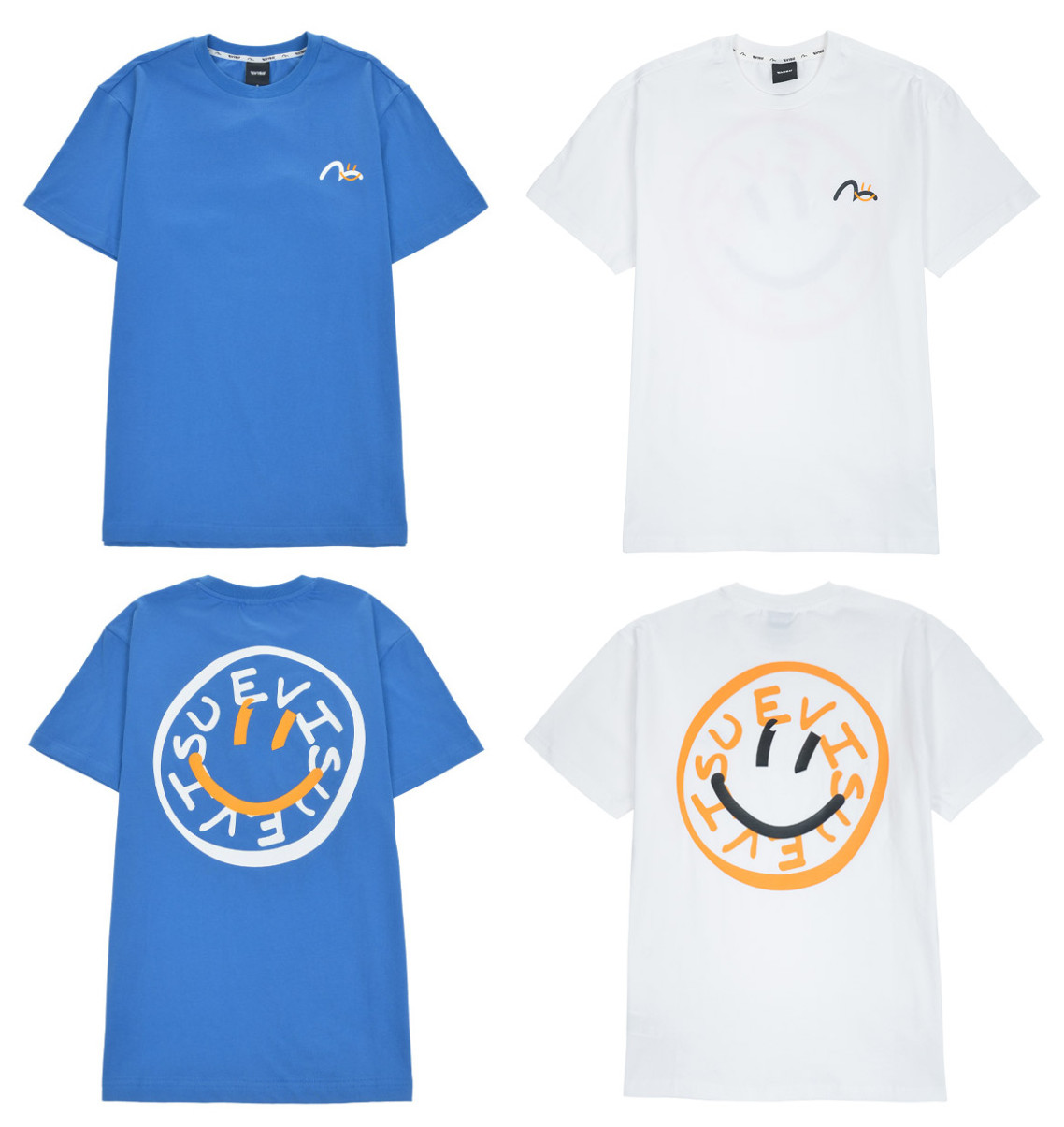 [EVISU KOREA] Loose Fit Back Smile Short-sleeve T-shirt Casual Men Women Tee Couple Tops Cotton Street Style Korean Style