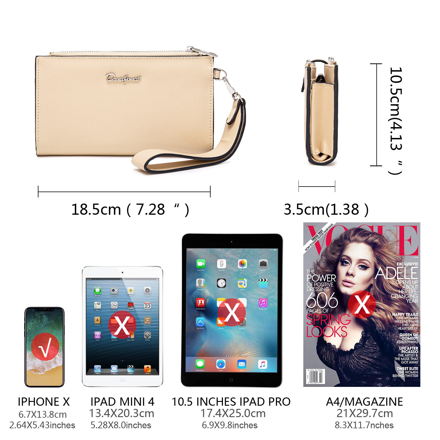 • PRODUCT FEATURES:2 main zipper compartments ; 8 card slots;1 removable wristlet strap