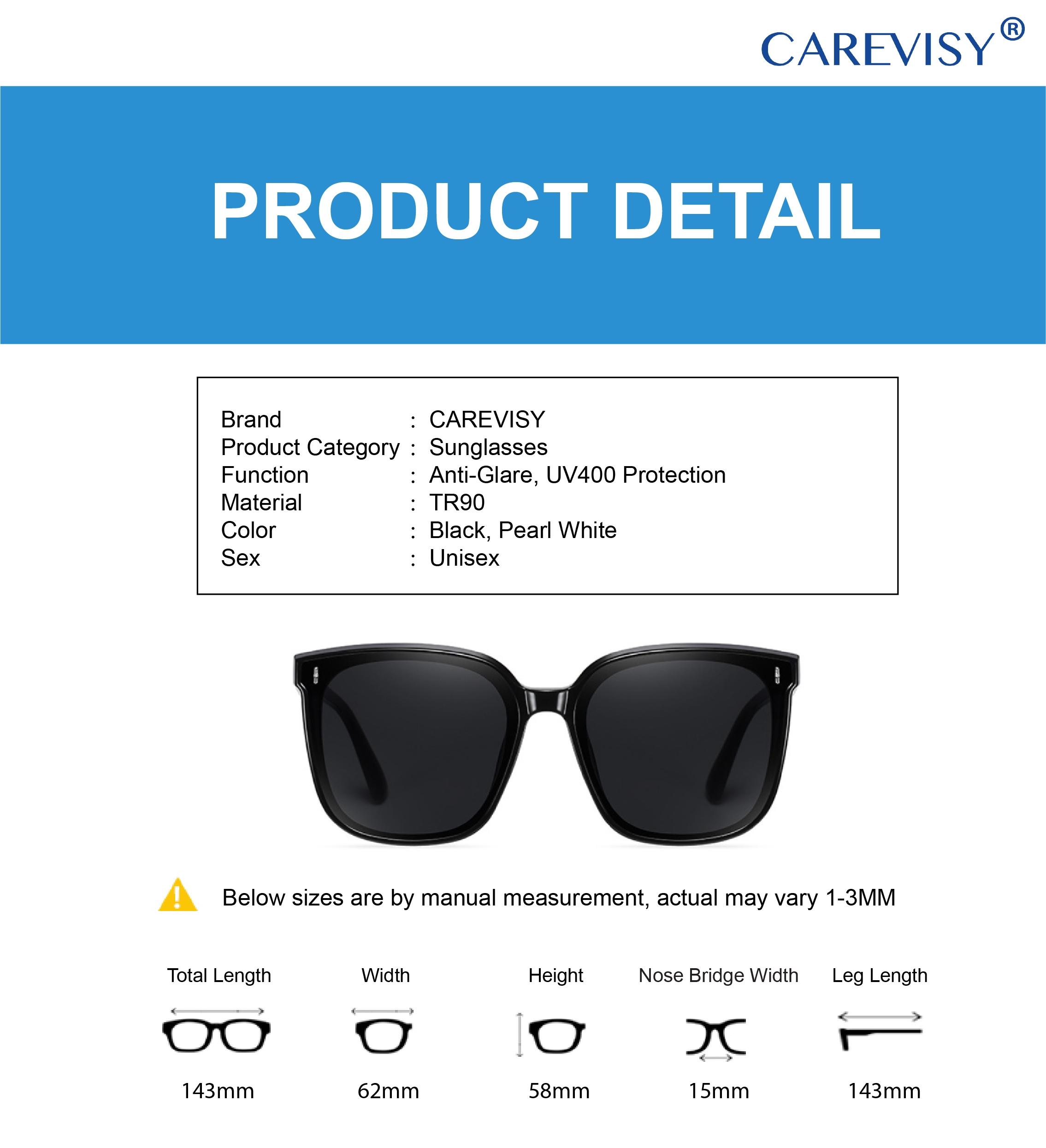 Welcome to CAREVISY, a professional Eyewear brand. We provide high quality Reading Glasses, Computer Glasses, Sunglasses and other Eyewear Accessories at affordable prices based in Singapore. Customer's satisfaction is our top priority. We valued customer's time and we will post out your order by next day. Afterwards, logistic team will pick up your parcel and delivery it to you, expected delivery time by logistic team is about 1-2 working days. Feel free to contact us if you have any queries. Care for your vision and enjoy your shopping now!