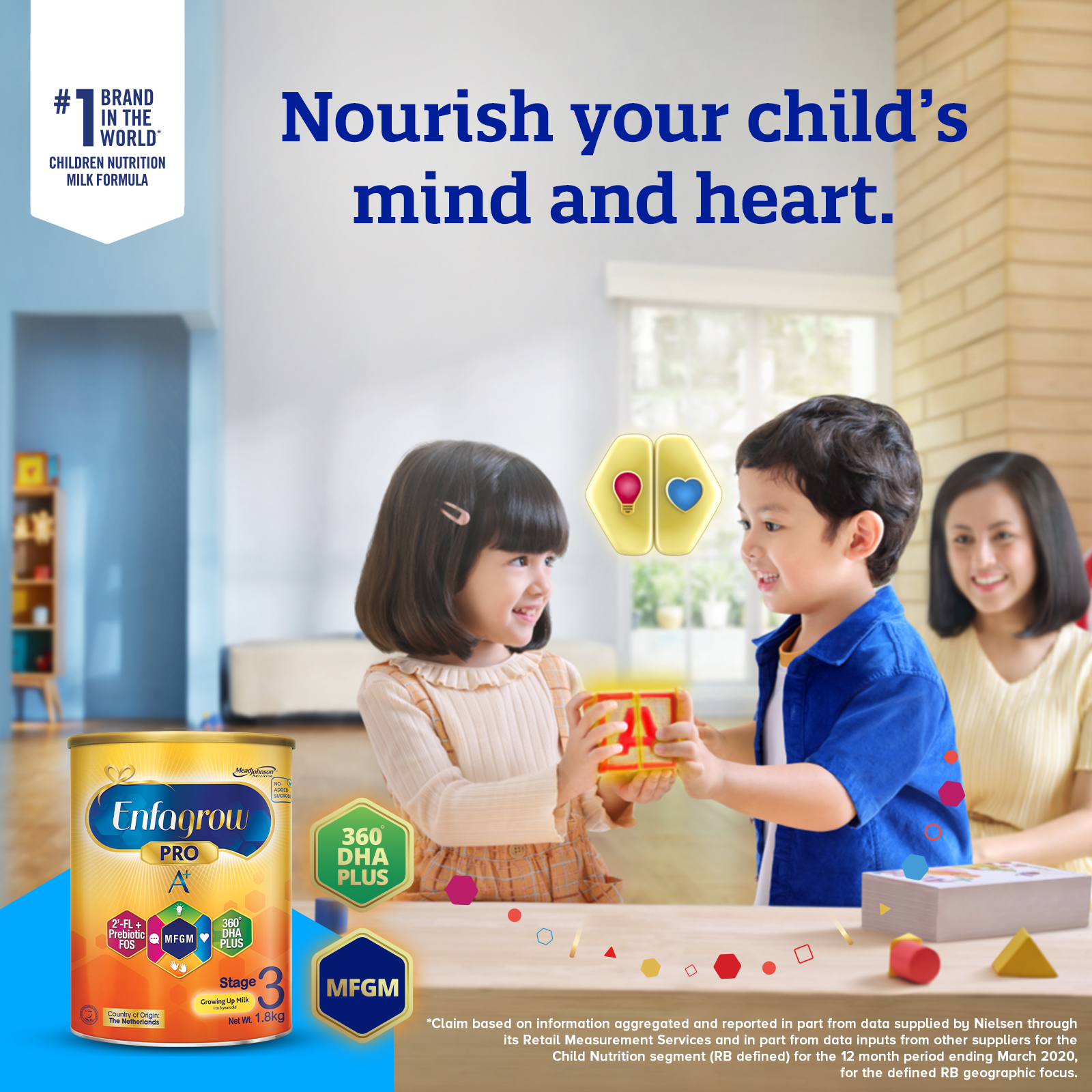 • With over 100 years of experience in pediatric nutrition, Mead Johnson Nutrition has scientifically formulated Enfagrow Pro A+ Stage 3 with a unique blend of nutrients that are important for overall mental and physical development.