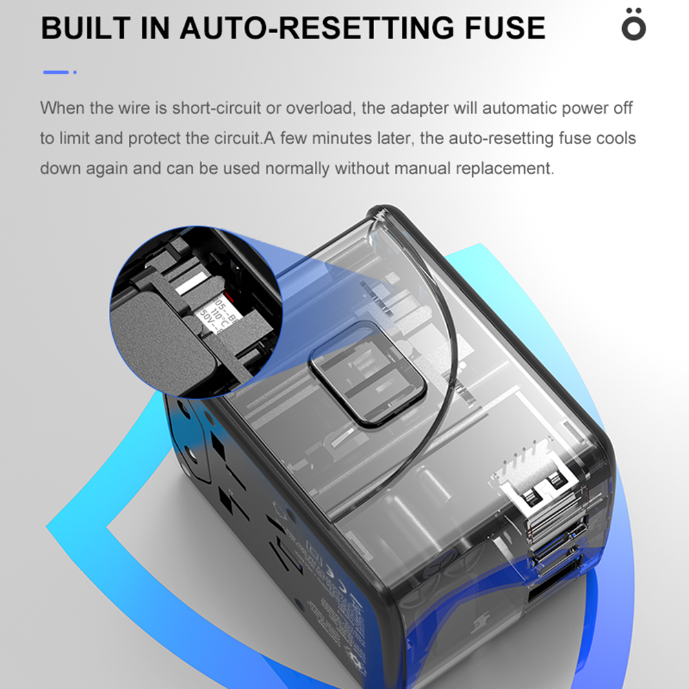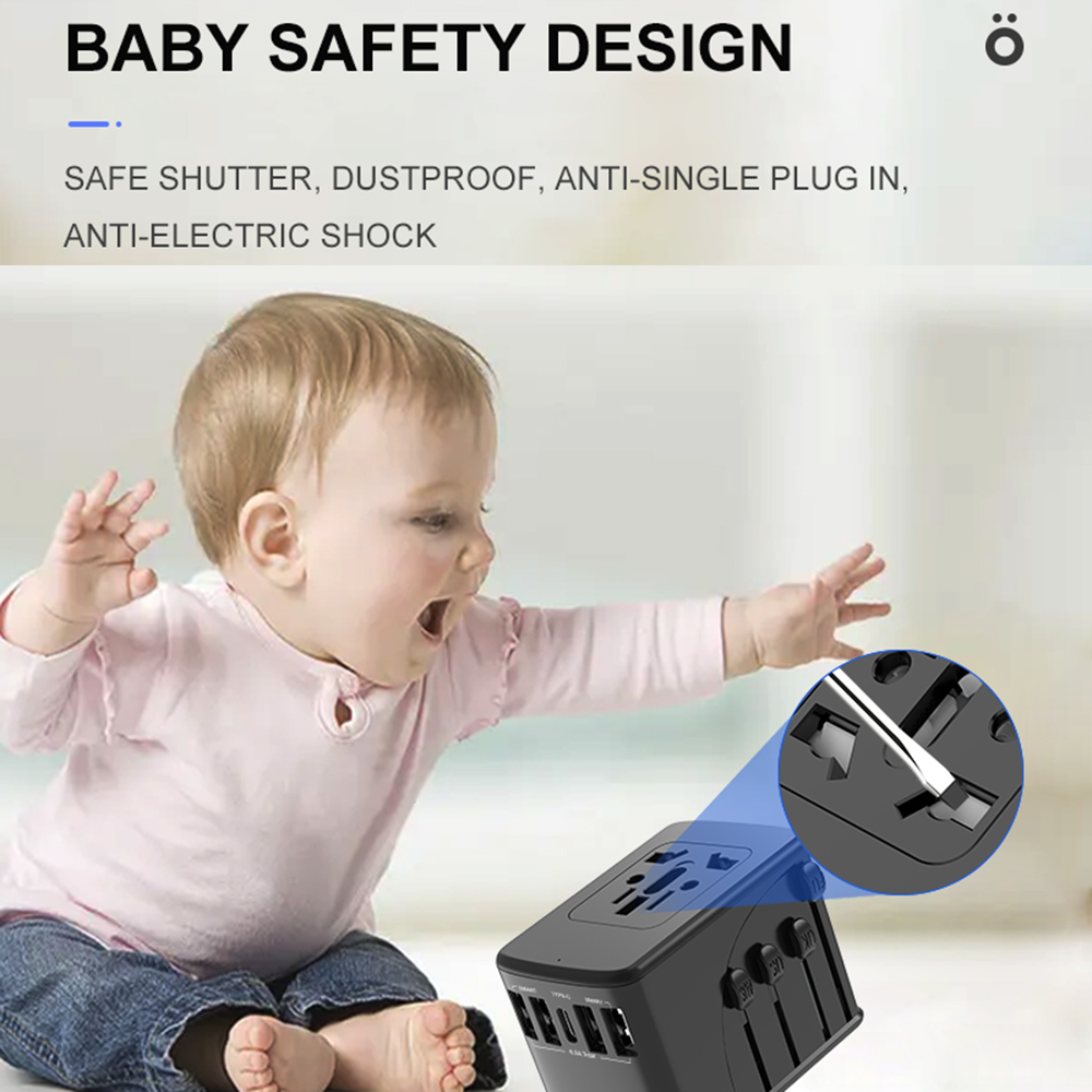Travel Essential: Built in with US/UK/AU/EU adapter Plug types supports Socket outlet in North America, United Kingdom, Continental European, Australia, Japan, Iceland, India, Ireland, Thailand , South Korea, China etc, more than 150 countries all over the world.