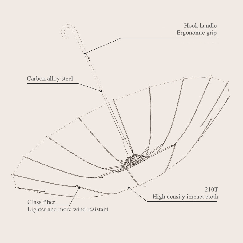 New arrival Japanese brand long umbrella 16K windproof curved handle big umbrella rainproof quality classic business big umbrella