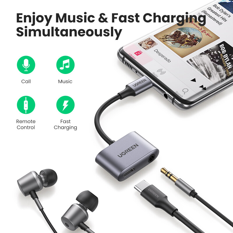 UGREEN 2-in-1 USB C Type C to 3.5mm Aux Adapter For Samsung Galaxy Samsung Note Ipad Pro 2020/2018 google device