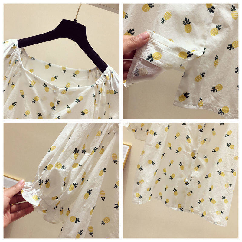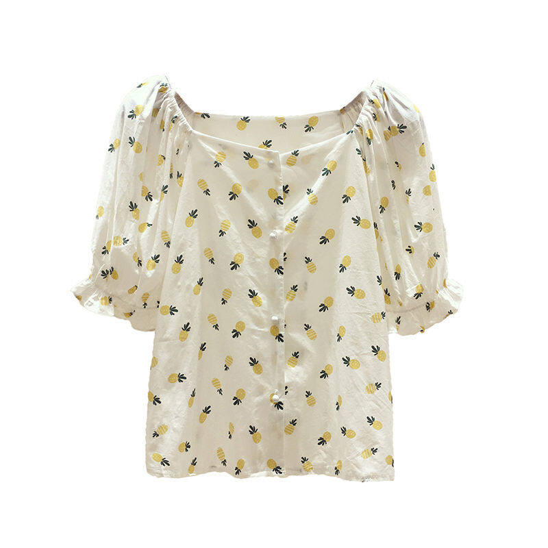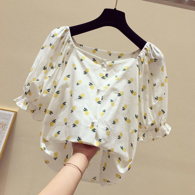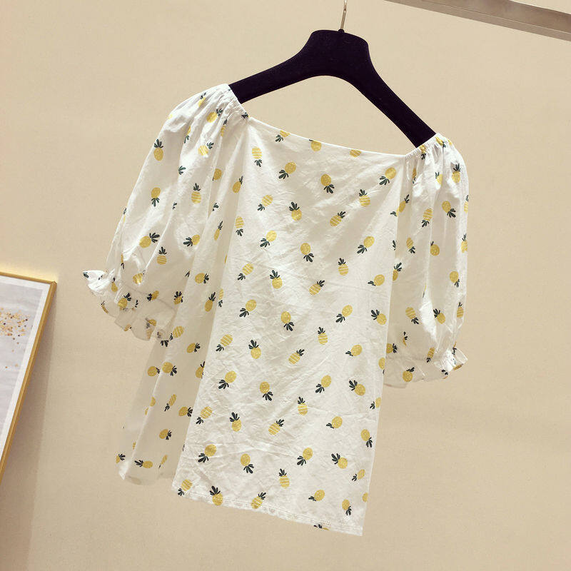 AFEG new Korean version of the word neck fashion loose wild floral short-sleeved blouse for women