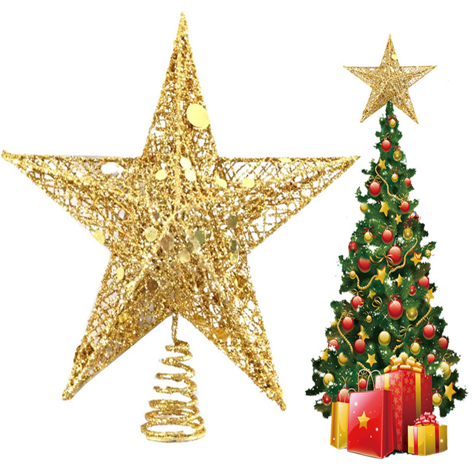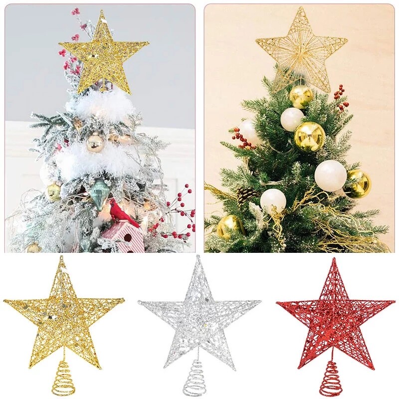 25cm Big Christmas Five-pointed Star Gold Sliver Glitter Christmas Tree Top Star Decorations For Home Exquisite Iron Art Ornament Xmas Party New Year Decor