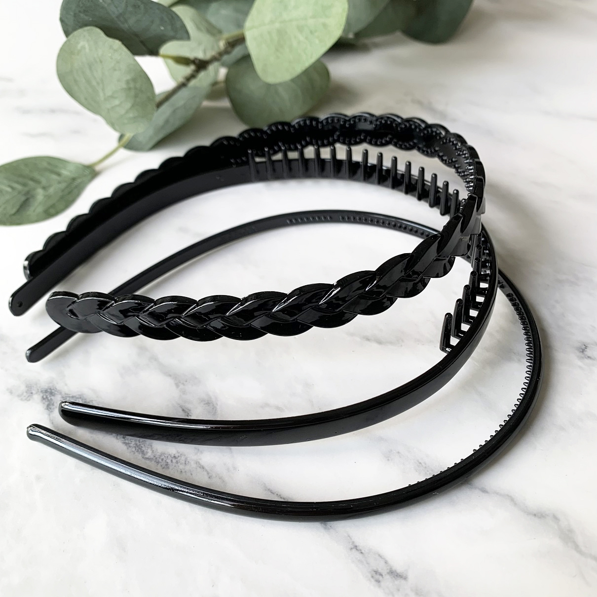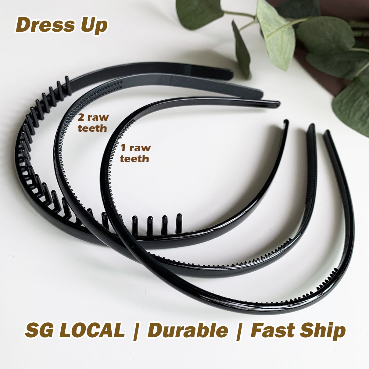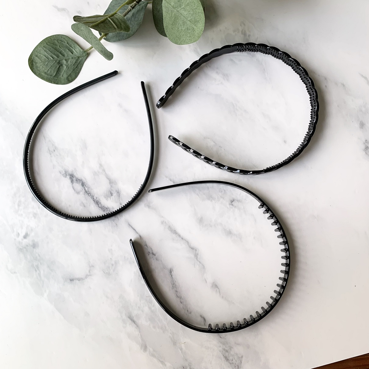 [SG|Durable] 3pcs Plastic Black Basic Hair Band, Tooth Hair Comb Headband Retro Toothed Hairband Hair Hoop Hair Accessory for Makeup Sports