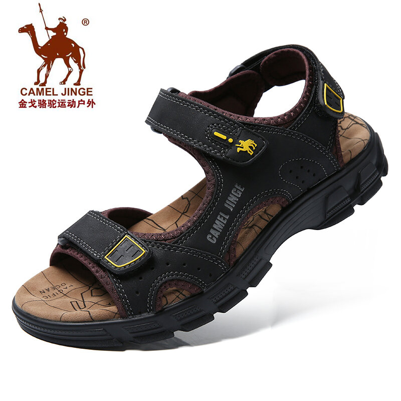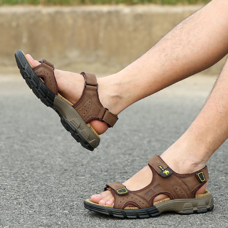 Mingli Camel Sandals Men's Summer Matte Leather Outdoor Casual Shoes Breathable Sports Sandals Open Toe Leather Sandals