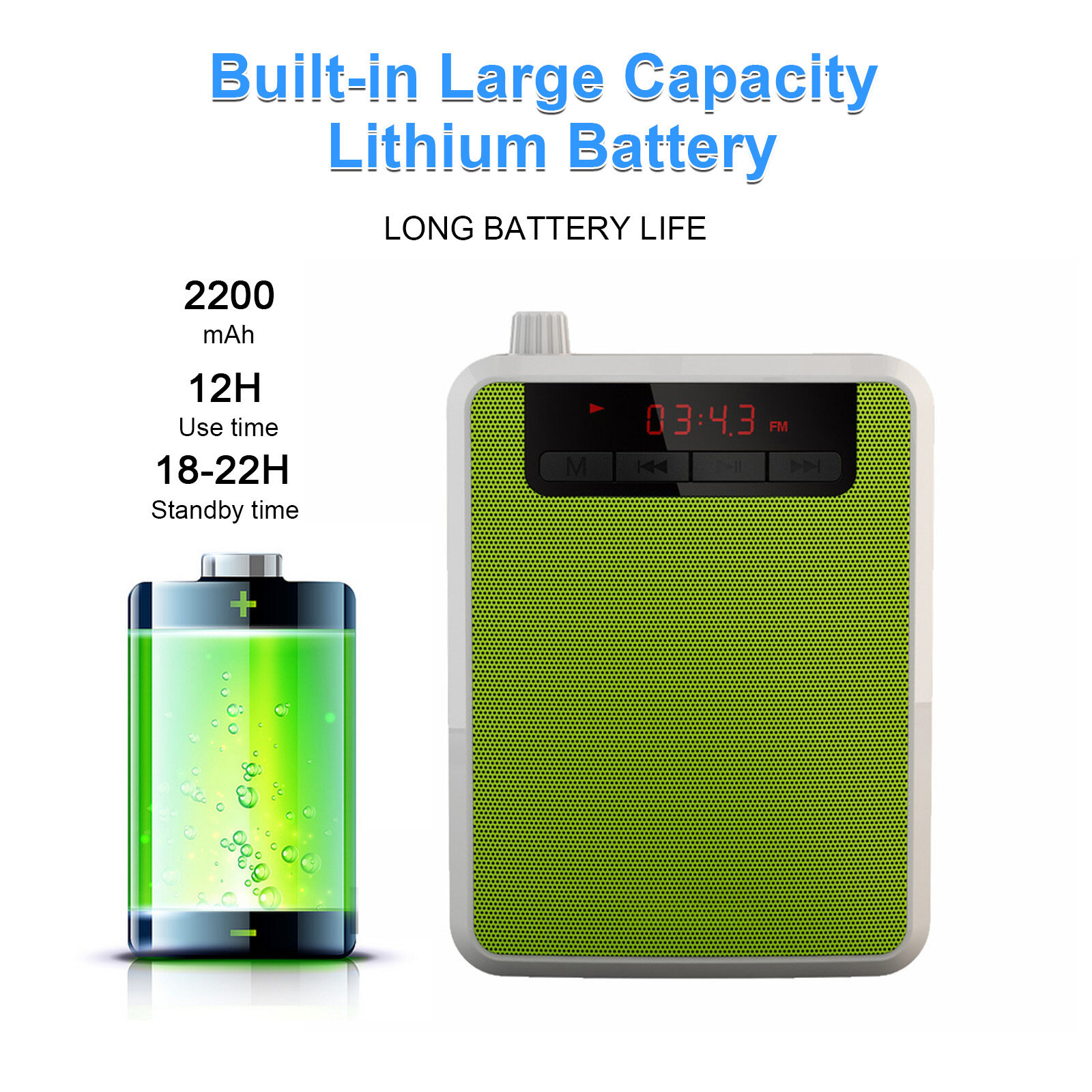 Rechargeable Battery: Built-in 2200 mAh rechargeable lithium battery, the standby time can last for 18-22 hours, and it can be used continuously for more than 12 hours after being fully charged.