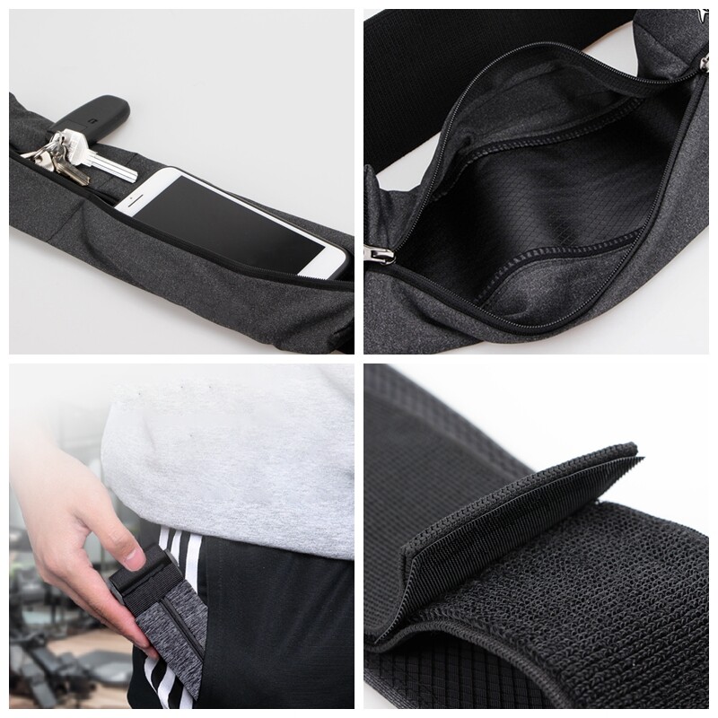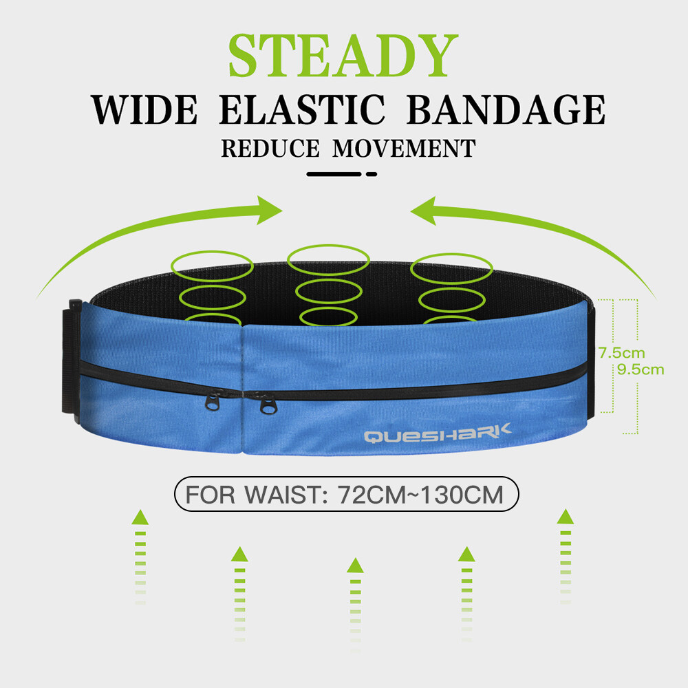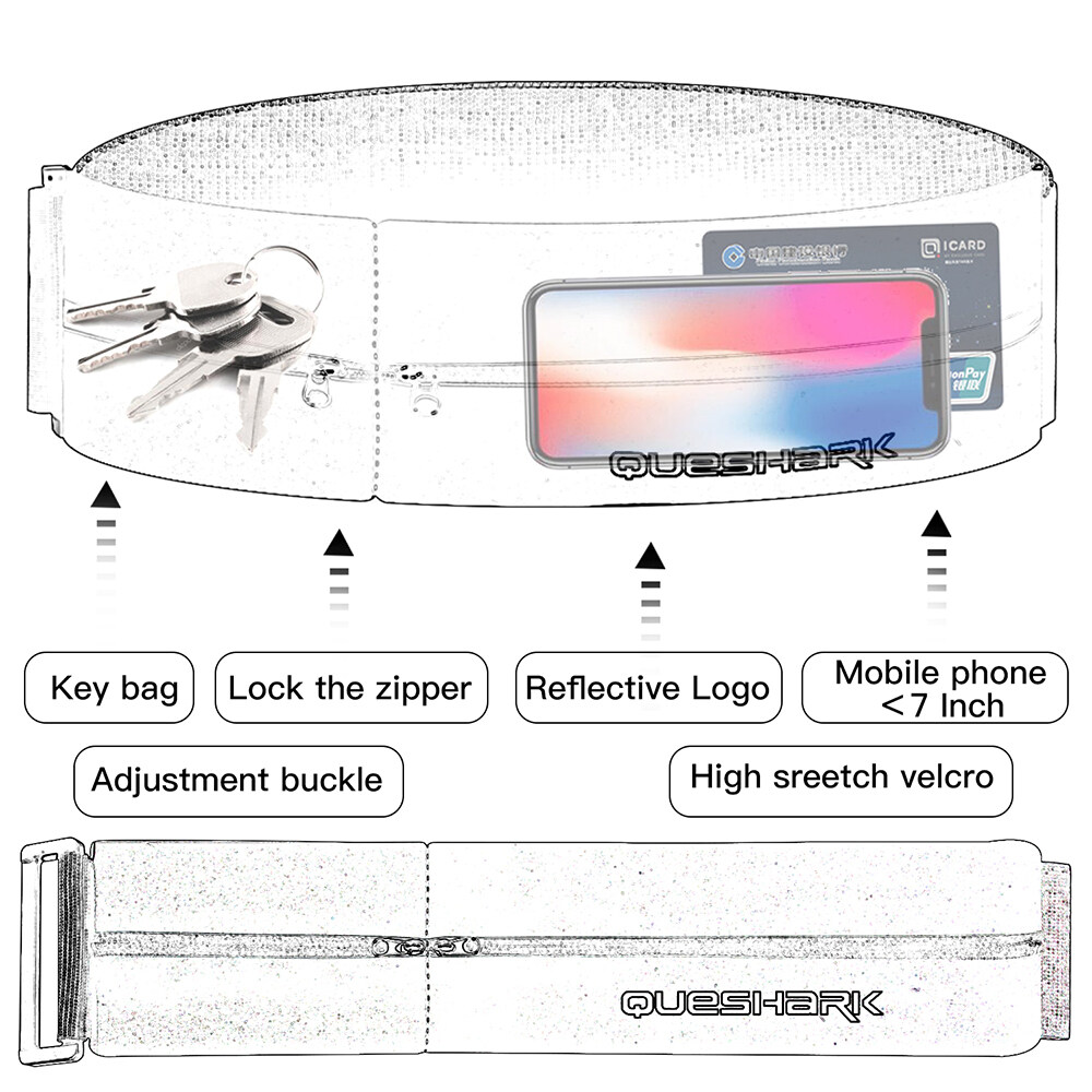 Queshark Reflective Elastic Running Waist Bag Sports Belt Bag Gym Mobile Phone Fanny Pack WasitWallet Pouch With Keychain