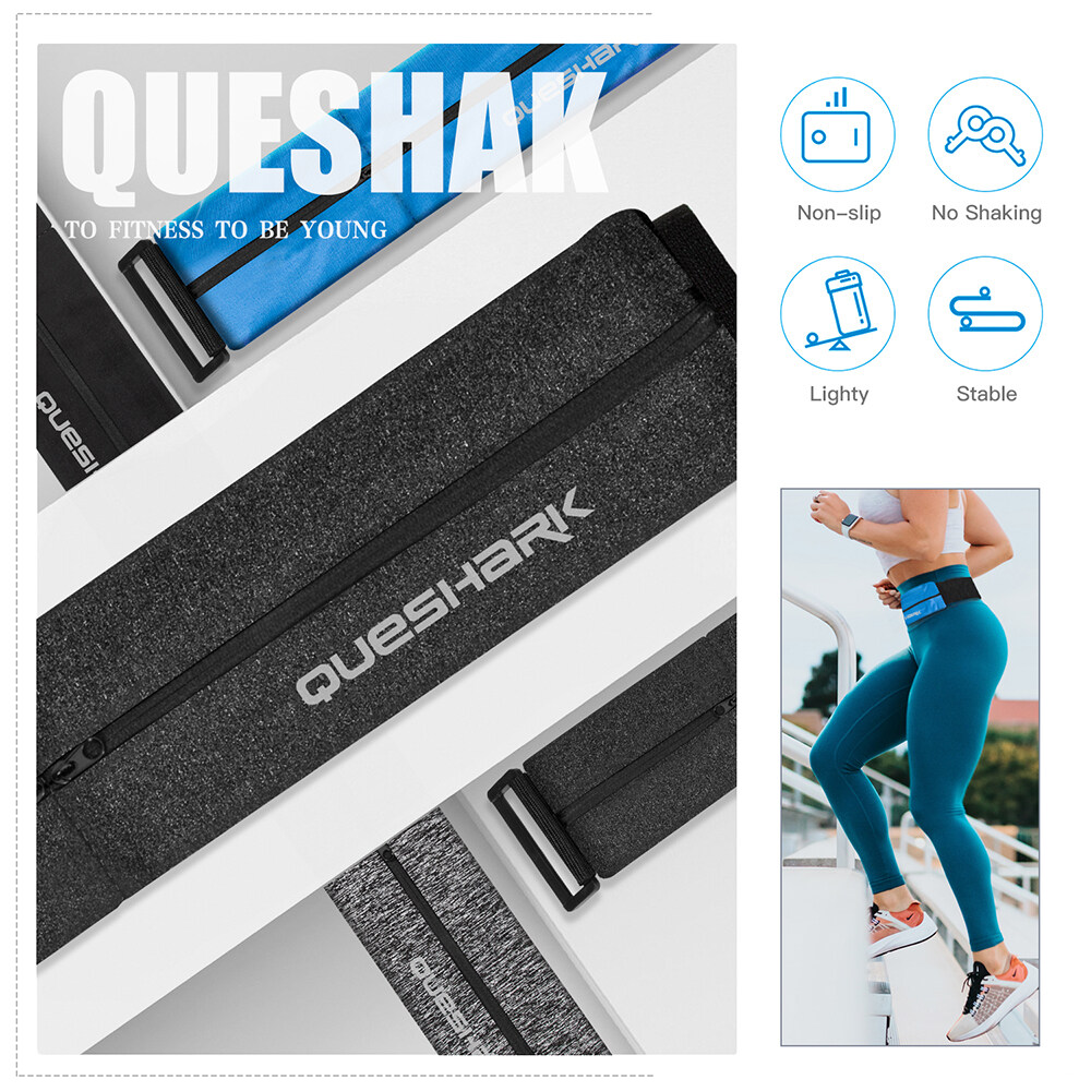 Queshark Trail Running Belt Bag Men Women Sports Waist Bag Reflective Fanny Pack Gym Invisible Phone Bag Wasit Pouch With Keychain