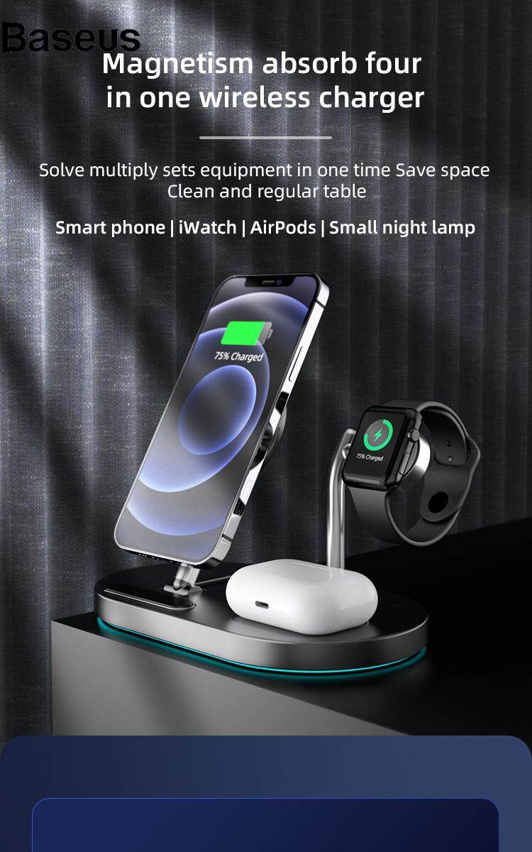Baseus wireless charger A23 3 in 1 Magnetic Wireless Charger for iPhone Portable Folding Wireless Charging Stand with Small Night Lamp for iPhone 12 13 Series/iWatch/AirPods?24hrs ship out?