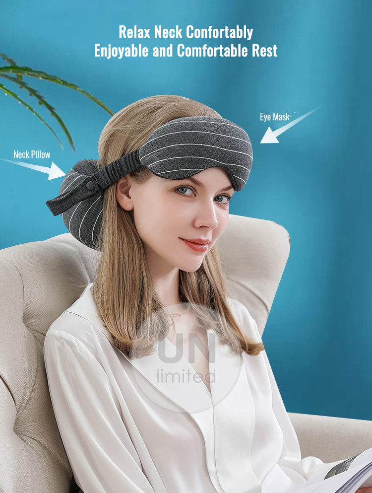 【2 in 1】Multifunctional Neck Pillow with Eye mask / Foam Particles Filling / Great for Travel Office / Memory Foam Back Pillow / Support Cushion