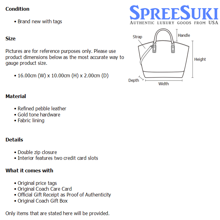 All our products are 100% authentic and purchased from Coach stores in USA. We are a reputable registered business in Singapore and it is illegal to sell counterfeit goods in Singapore. This product also comes with a gift receipt which is printed by the Coach store that we purchased the item from. It states the item that we purchased and the Coach store that it was purchased from, proving the authenticity of the item. Buy with confidence.