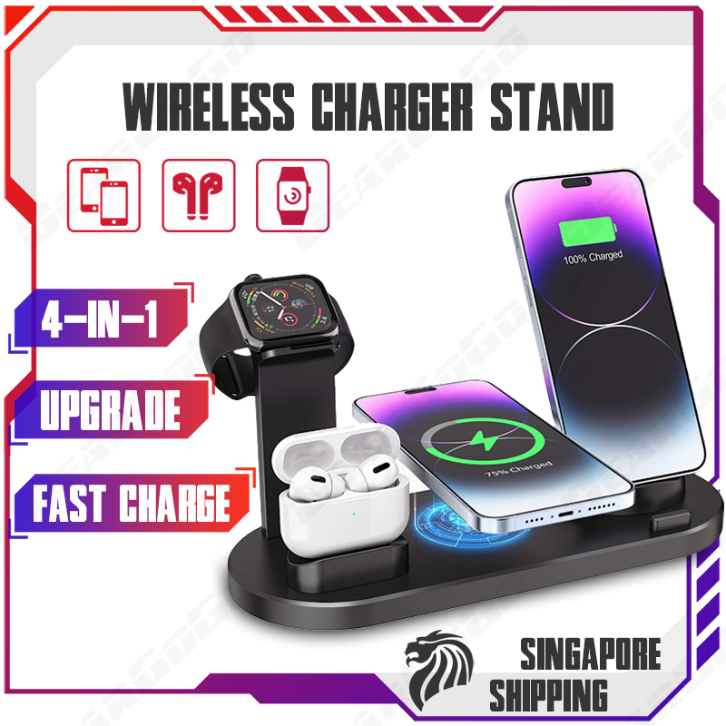 [SG] 4 in 1 Qi Fast Wireless Charging Dock for Apple Watch 7 6 and Airpods 2 3 Pro Charging Station for Multiple Devices Wireless Charger for iPhone 14 13 12 11