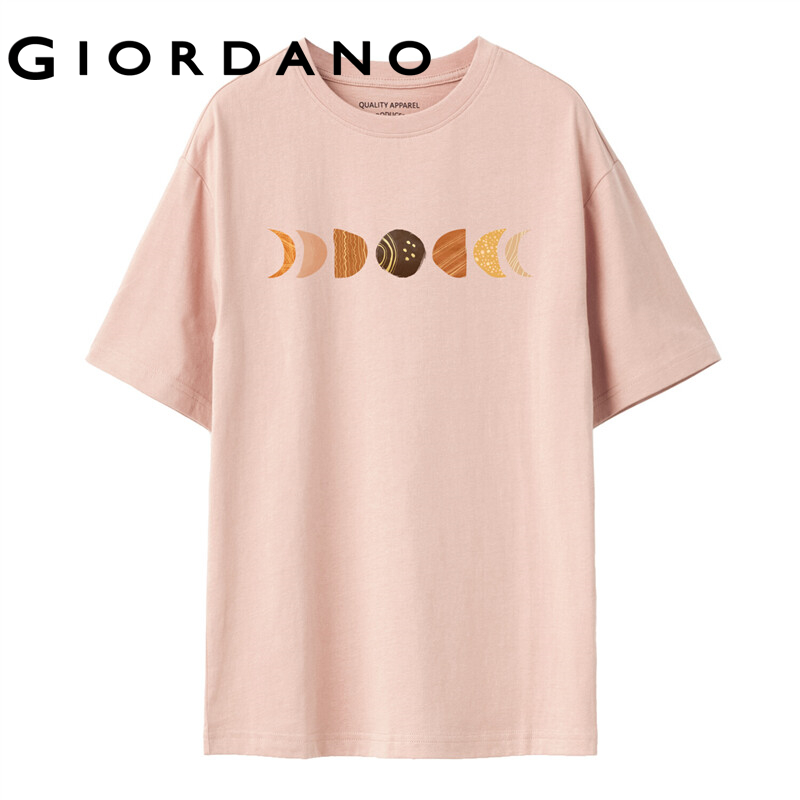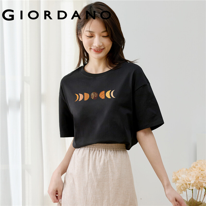 GIORDANO HuaXianSheng Series Women T-Shirts Crewneck Printed Graphic T-Shirts Short Sleeves Summer 100% Cotton Tops 99391185
