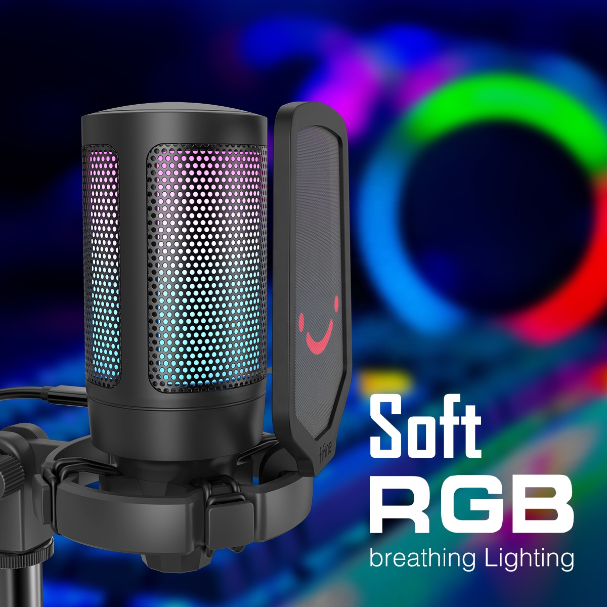 FIFINE A6 RGB USB Condenser Microphone with Mute Button & Gain Control, for Gaming, Streaming, Podcasting, Facebook, Youtube