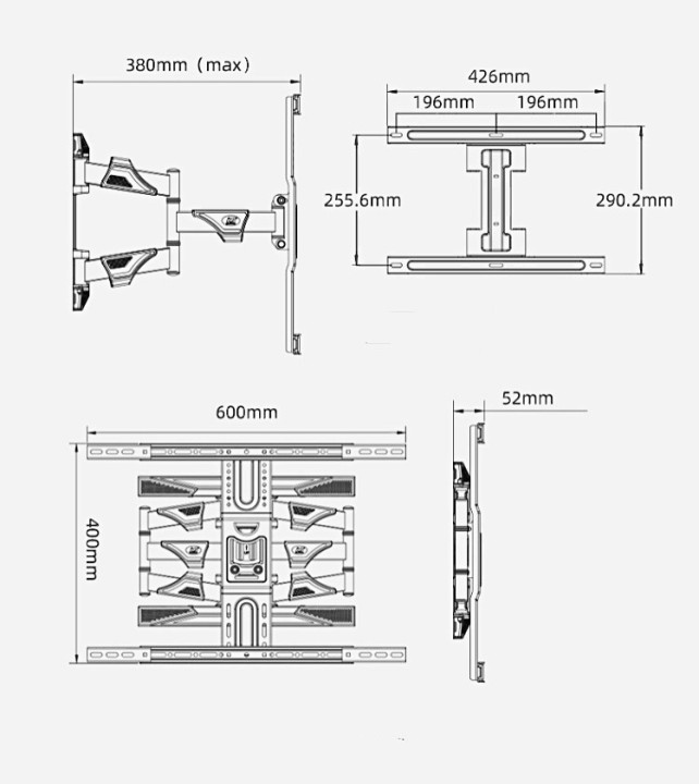 NB North Bayou P4 Full Motion Swivel Articulating TV Wall Mount Bracket for 32"-55" LED LCD Plasma Flat Screen Monitor up to 32kg Black