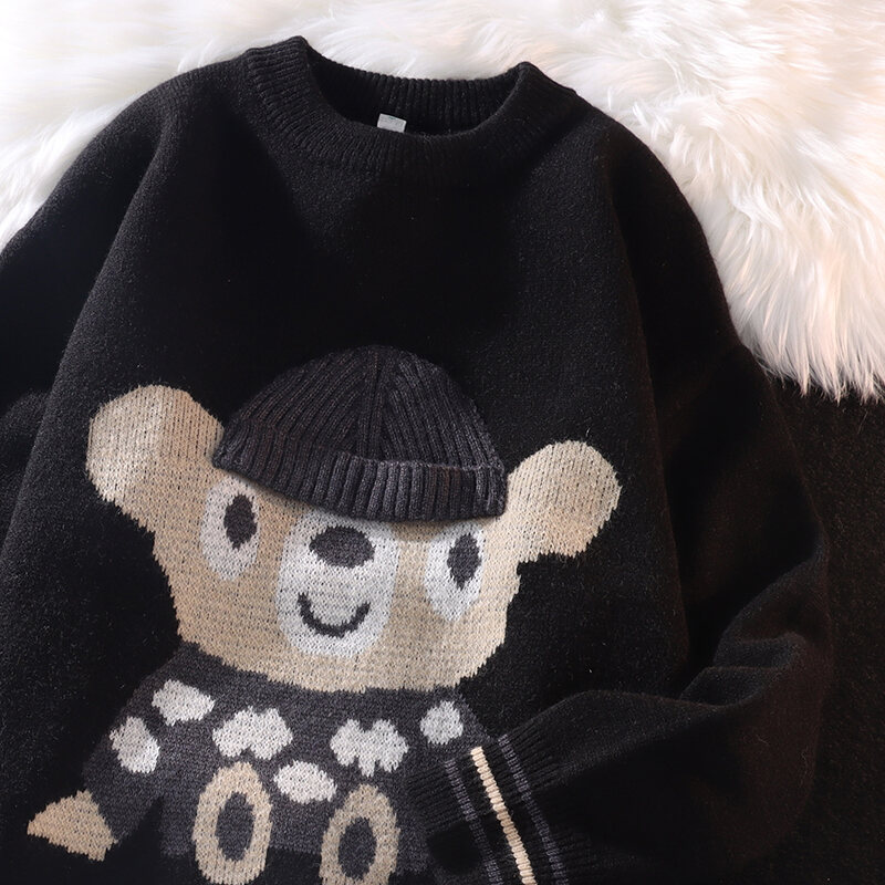 Autumn and Winter Sweater Men's Thickened Loose Trendy Ins Hong Kong Style Cartoon Printed Sweater Hip Hop Lazy Casual Clothes