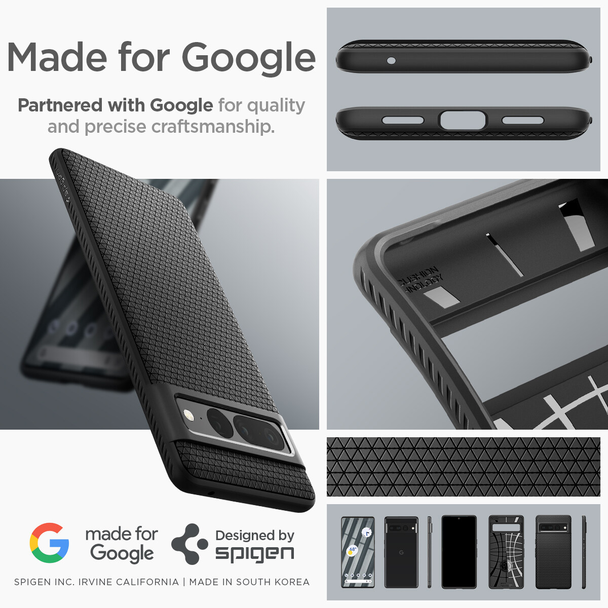SPIGEN Case for Google Pixel 7 / 7 Pro / 6a / 6 / 6 Pro [Liquid Air] Diamond-cut Pattern Black TPU Case with Flexible and Durable Shock Absorption / Google Pixel 7, 7 Pro Case / 6a, 6, 6 Pro Case / Pi