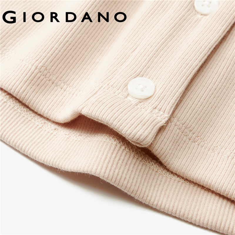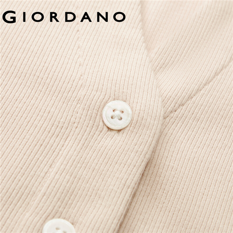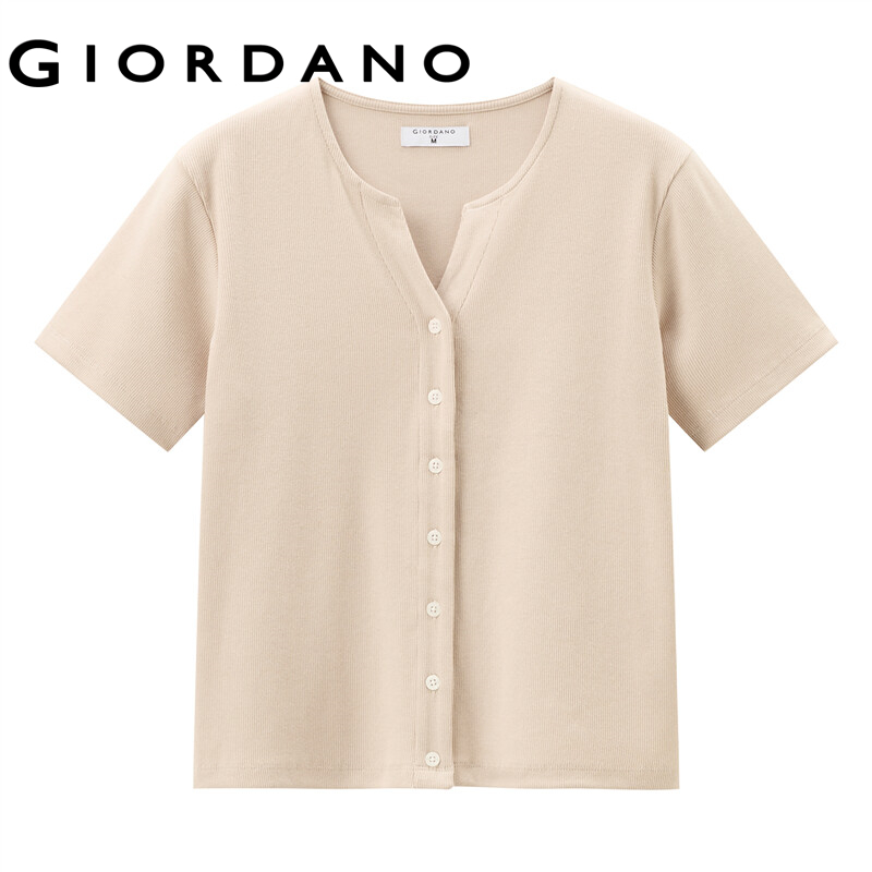 GIORDANO Women T-Shirts Button Closure Solid Color Casual T-Shirts V-Neck Summer Short Sleeve Relaxed Basic T-Shirts 13322206