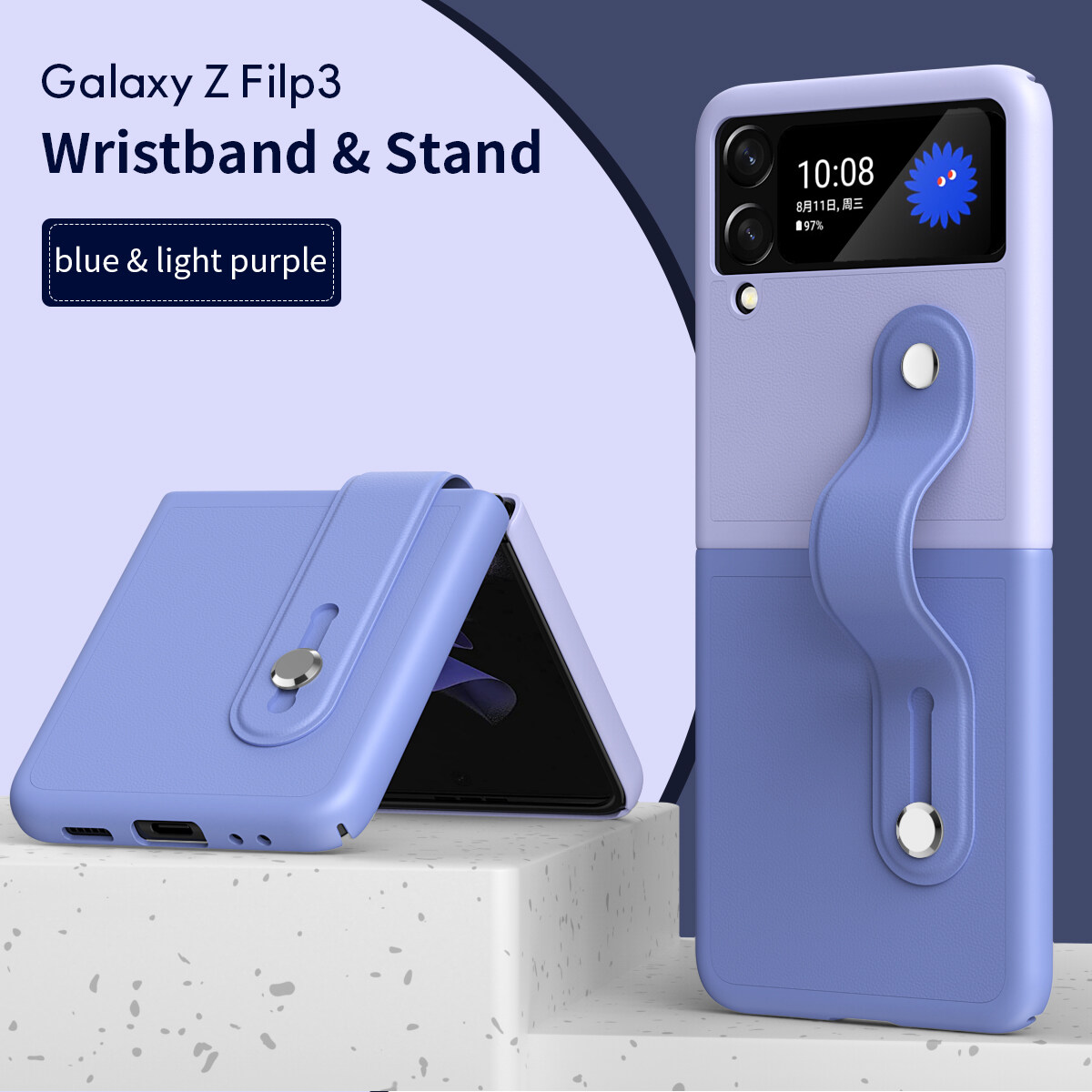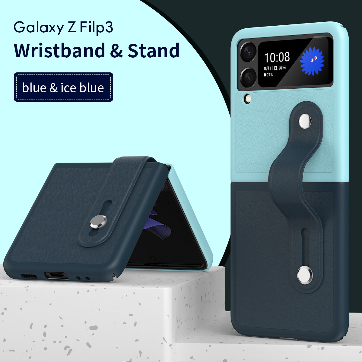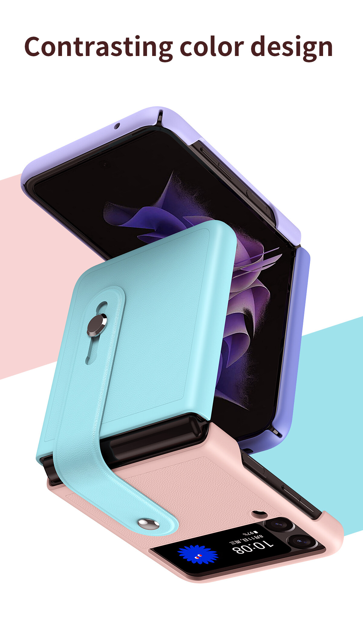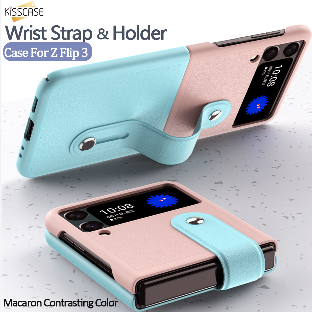 [Retractable Wrist Strap Bracket] KISSCASE for Samsung Z Flip 4 Z Flip 3 Contrasting Color Adjustable Wrist Strap Holder Leather Case 180° Folding Phone Holder Case for Samsung Galaxy Z Flip 3 5G