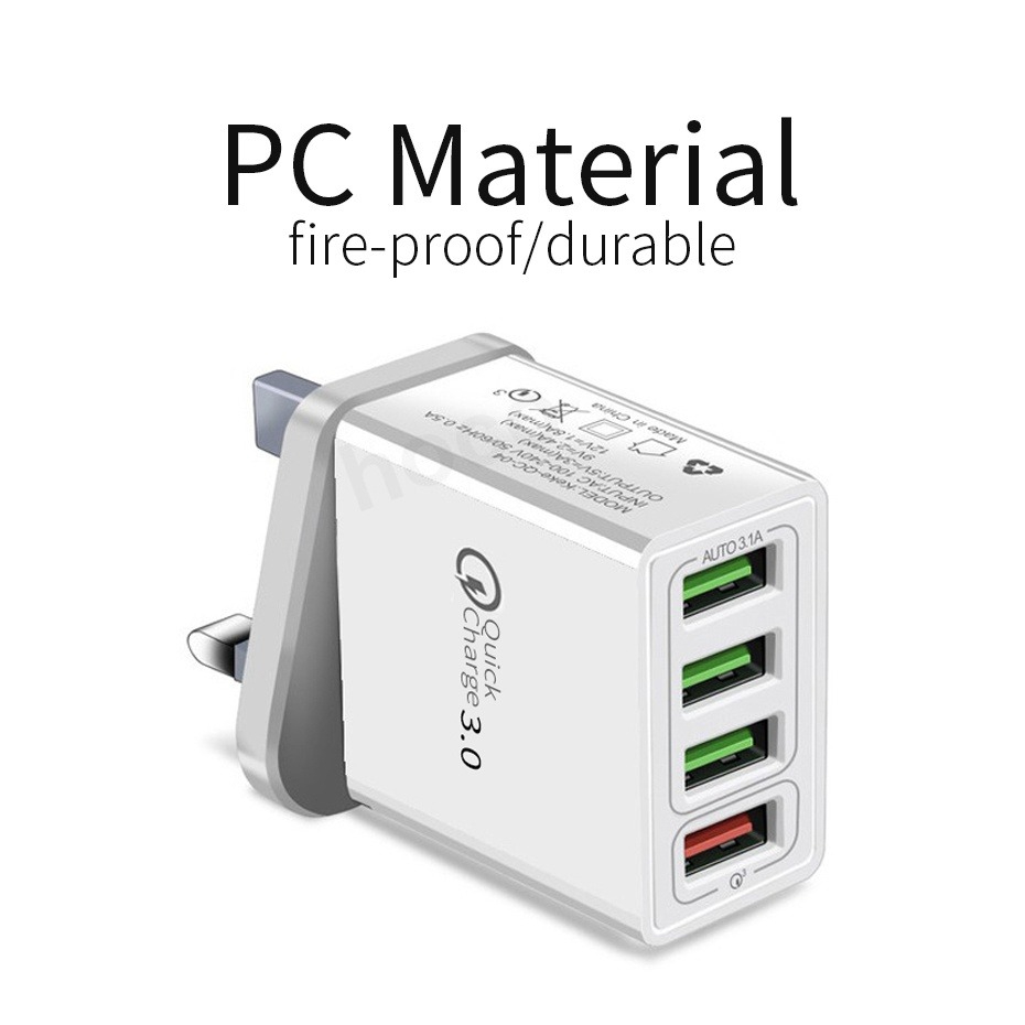 - 4 USB ports, charging 4 devices at the same time.