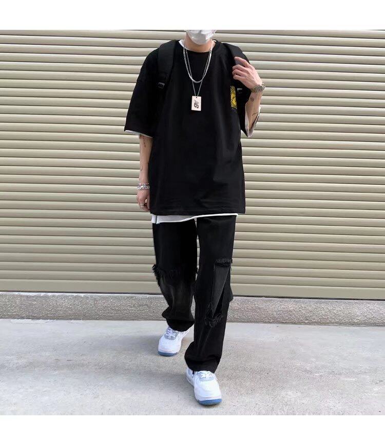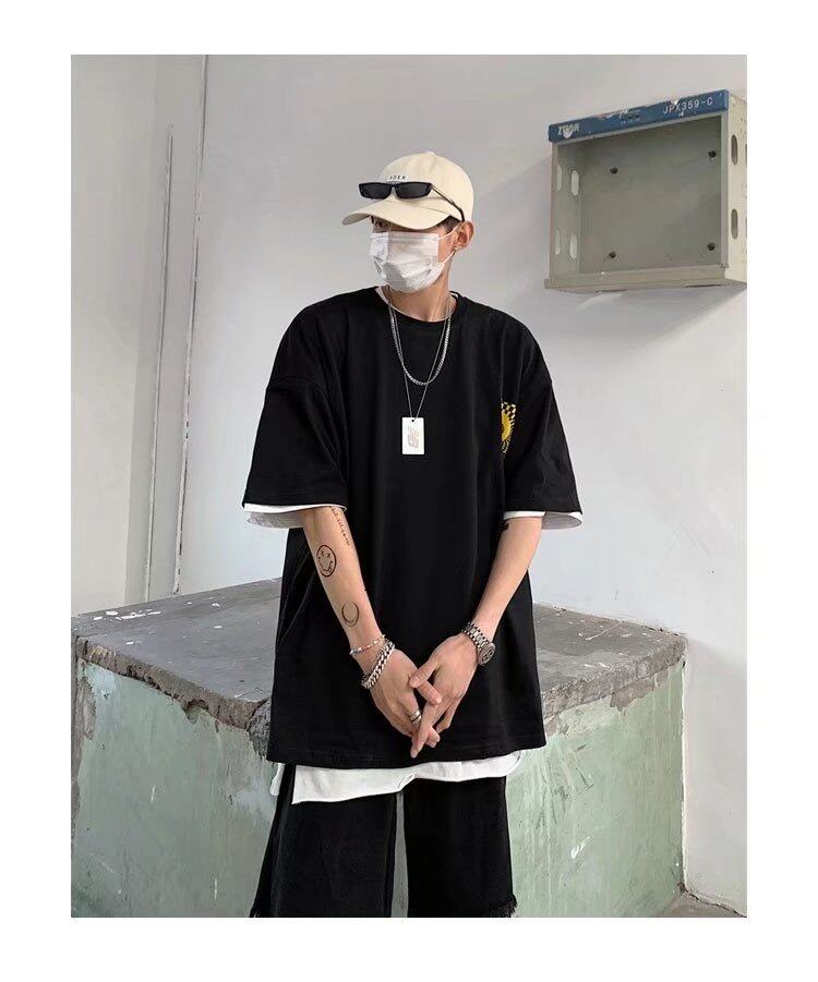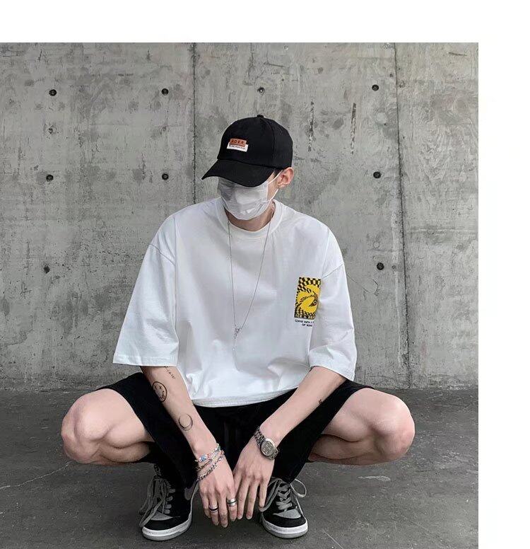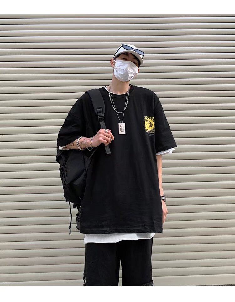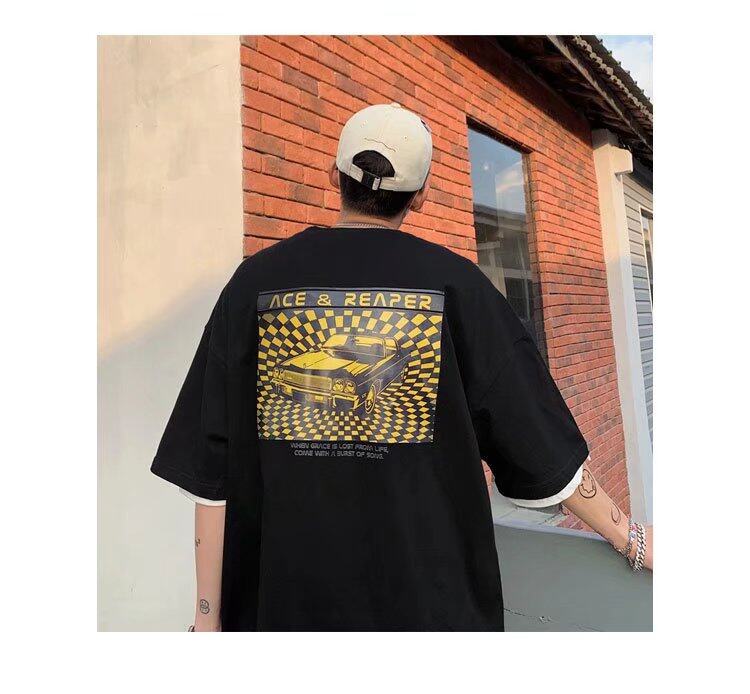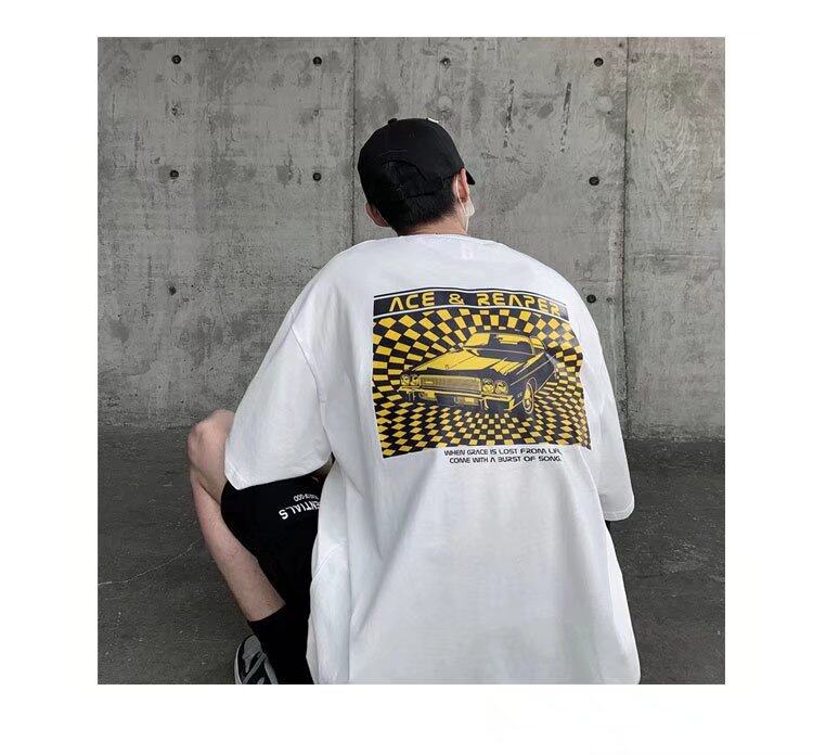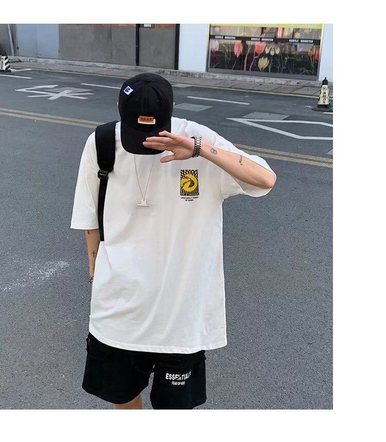 t shirt Men Cotton Korean Style Oversize Short Sleeve Figure Print Fashion Tops Loose Casual t-shirt
